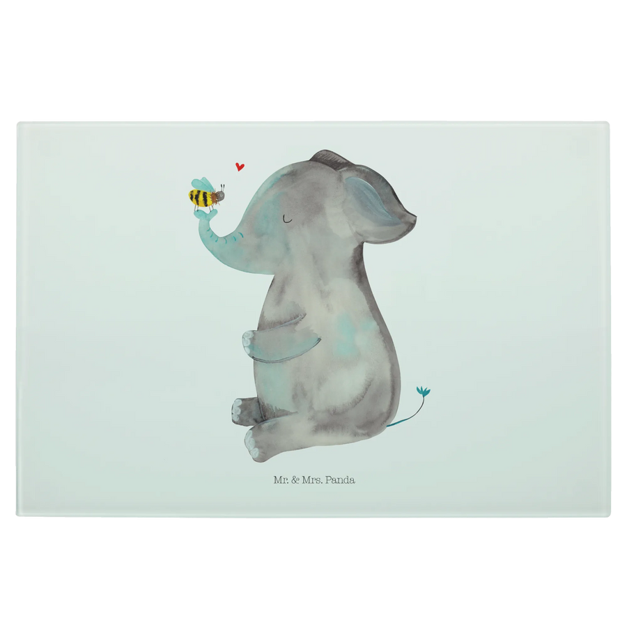 Glasschneidebrett Elefant Biene - Medium Glas Schneidbrett - ohne Spruch - Weiß