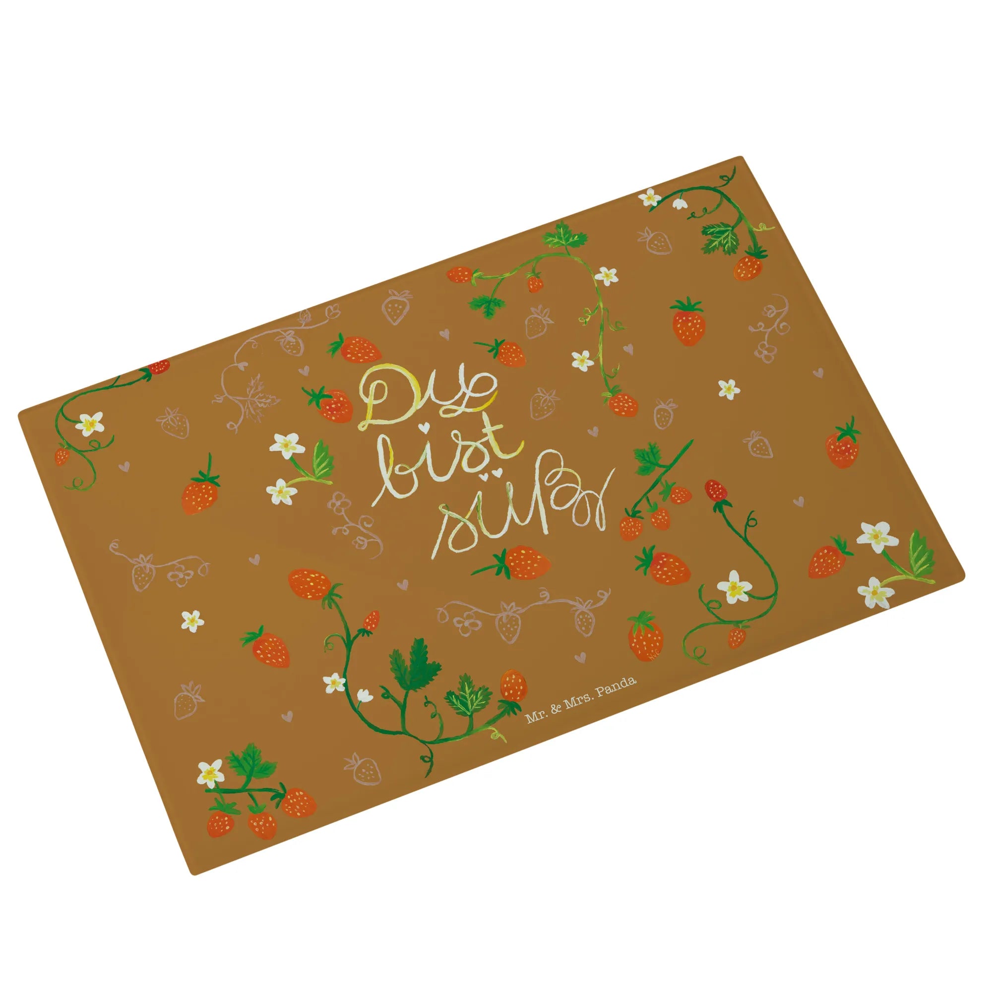 Entdecke unser XL Glas Schneidbrett mit dem süßen Erdbeeren-Motiv "Du bist süß" aus der Wild & Free-Kollektion von Mr. & Mrs. Panda. Dieses einzigartige, stabile und kratzfeste Glas Schneidbrett ist nicht nur funktional, sondern auch ein echter Hingucker in deiner Küche.