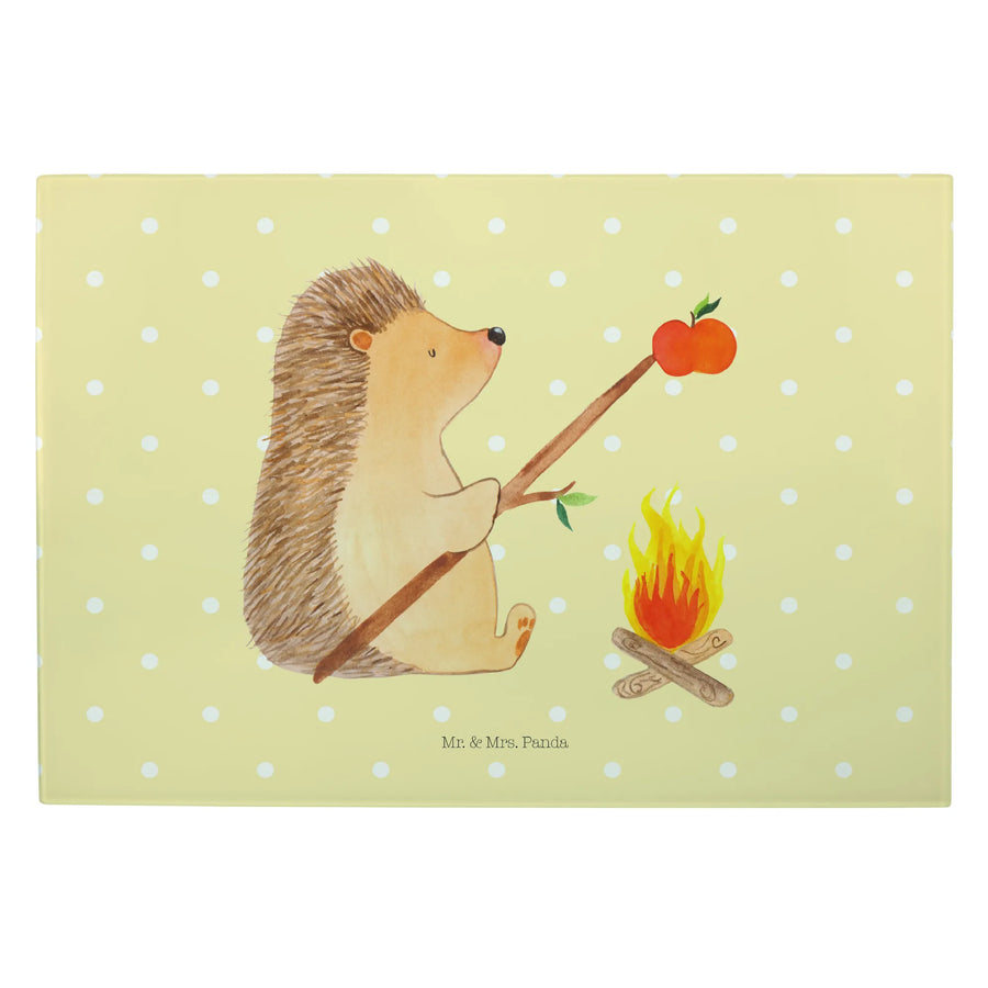 Glasschneidebrett Igel Grillen - XL Glas Schneidbrett - ohne Spruch - Gelb Pastell