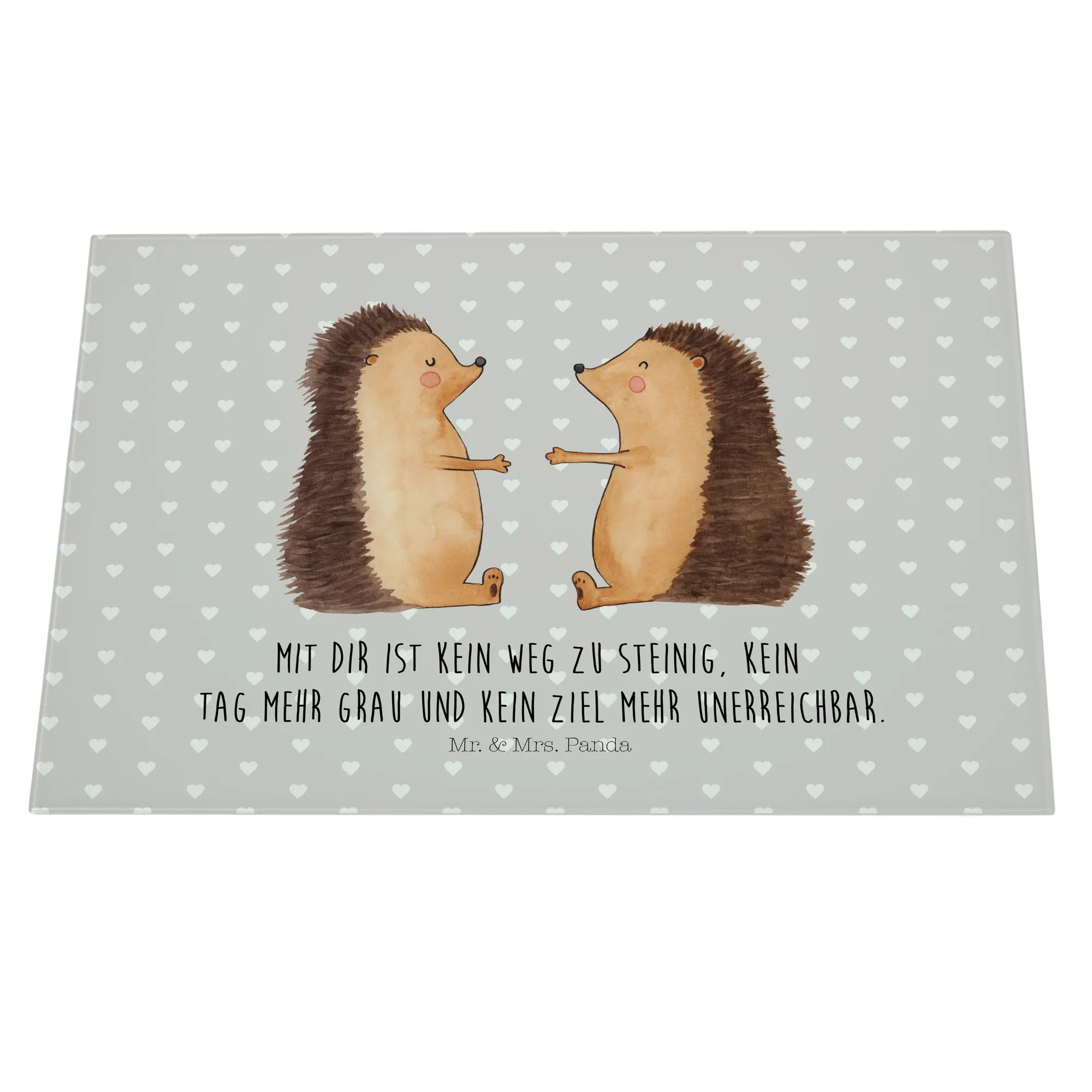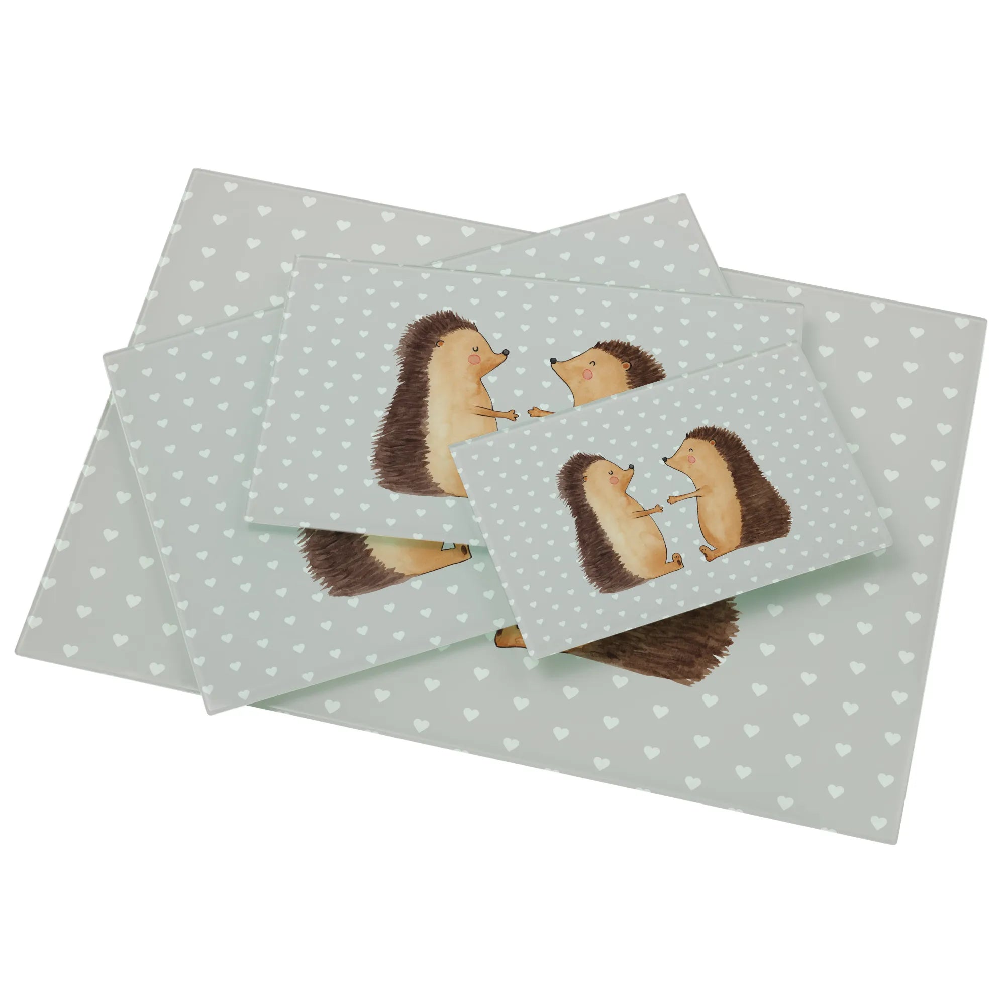 Das Medium Glas Schneidbrett mit dem süßen Motiv "Igel Liebe" aus der besonderen Liebe Kollektion von Mr. & Mrs. Panda ist das perfekte Geschenk für all jene, die das Gefühl der Verliebtheit feiern möchten.