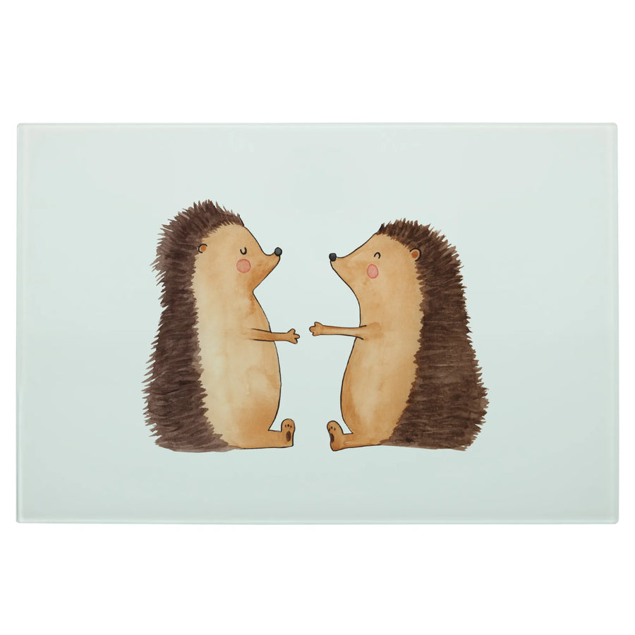Das Medium Glas Schneidbrett mit dem süßen Motiv "Igel Liebe" aus der besonderen Liebe Kollektion von Mr. & Mrs. Panda ist das perfekte Geschenk für all jene, die das Gefühl der Verliebtheit feiern möchten.