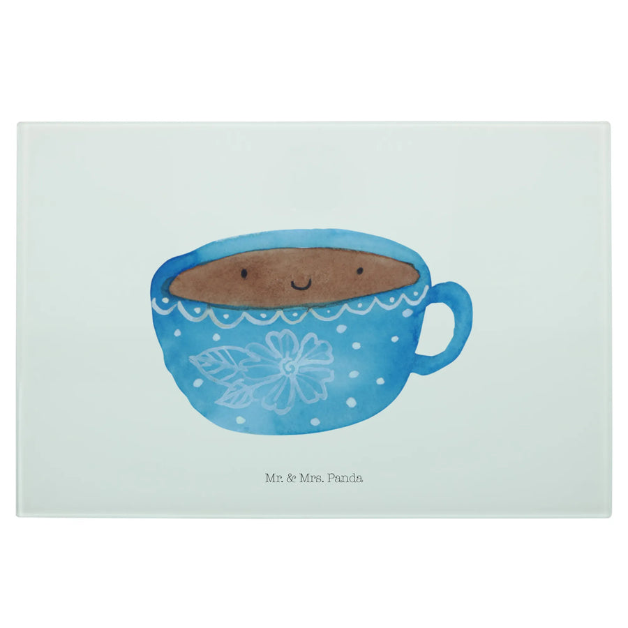 Das Medium Glas Schneidbrett mit dem fröhlichen Kaffee Tasse Motiv von Mr. & Mrs. Panda ist das perfekte Geschenk für alle Kaffeeliebhaber und Genussmenschen!