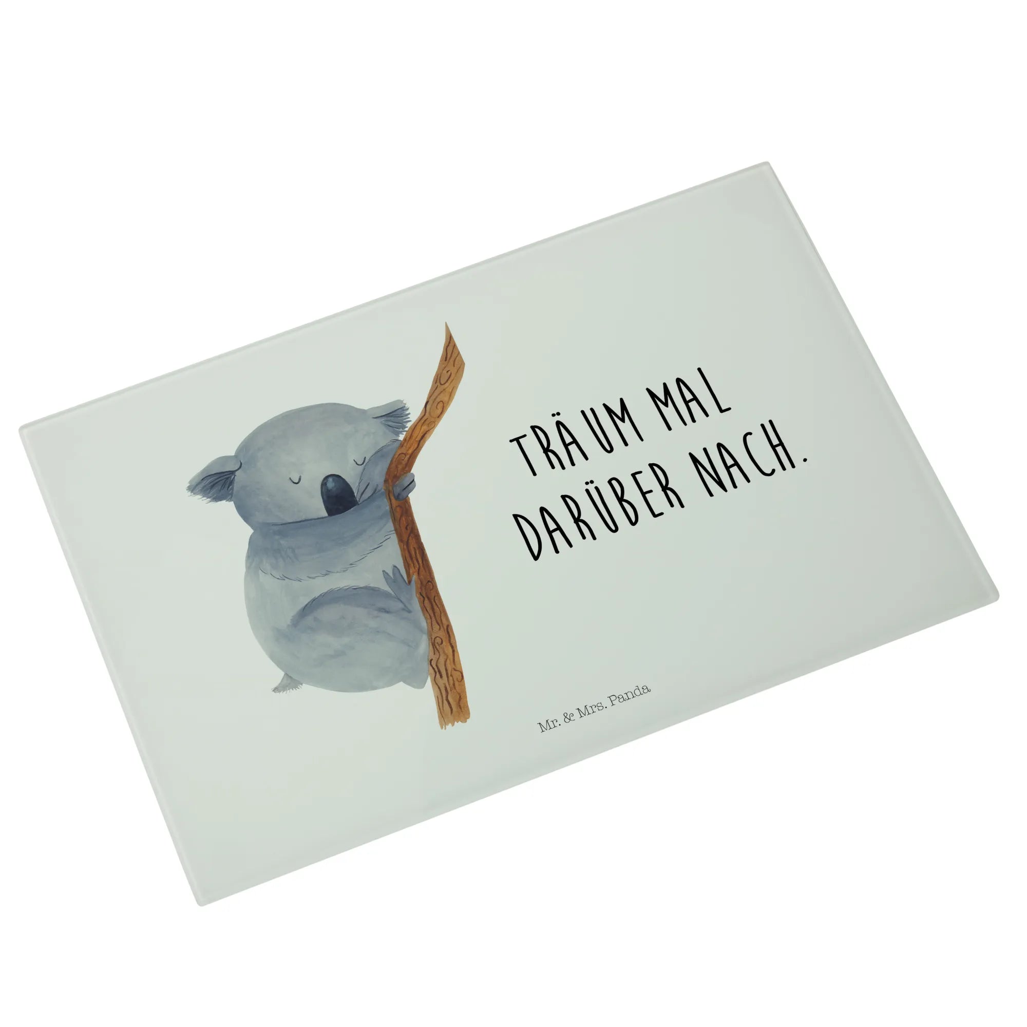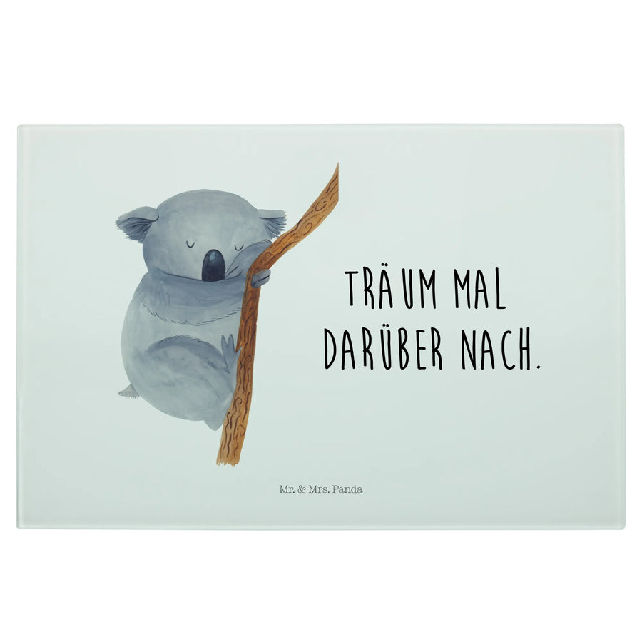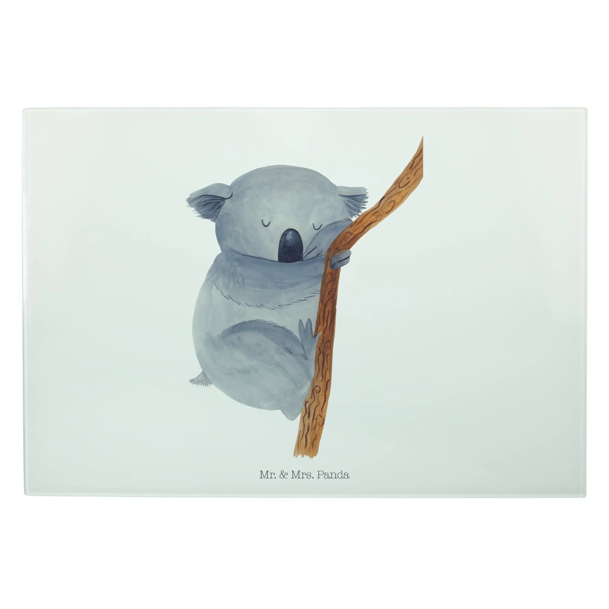 Glasschneidebrett Koalabär - Medium Glas Schneidbrett - mit Spruch - Weiß