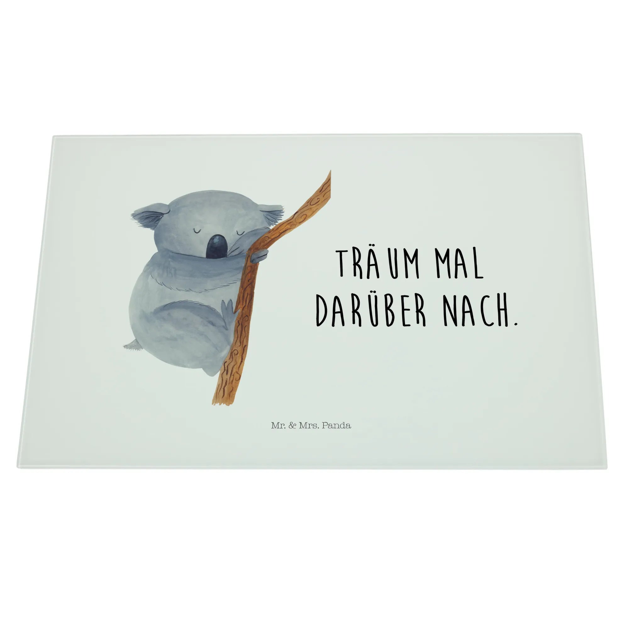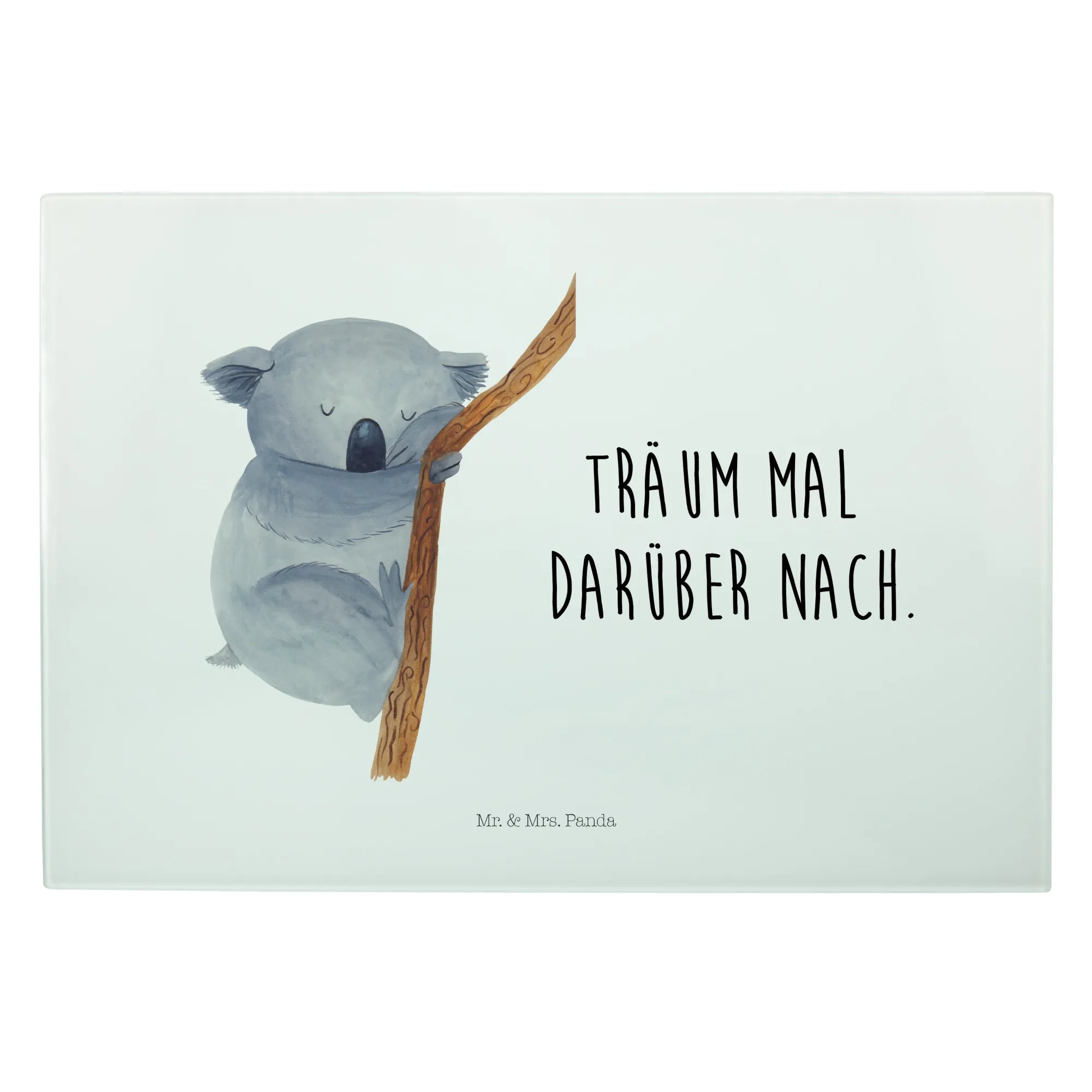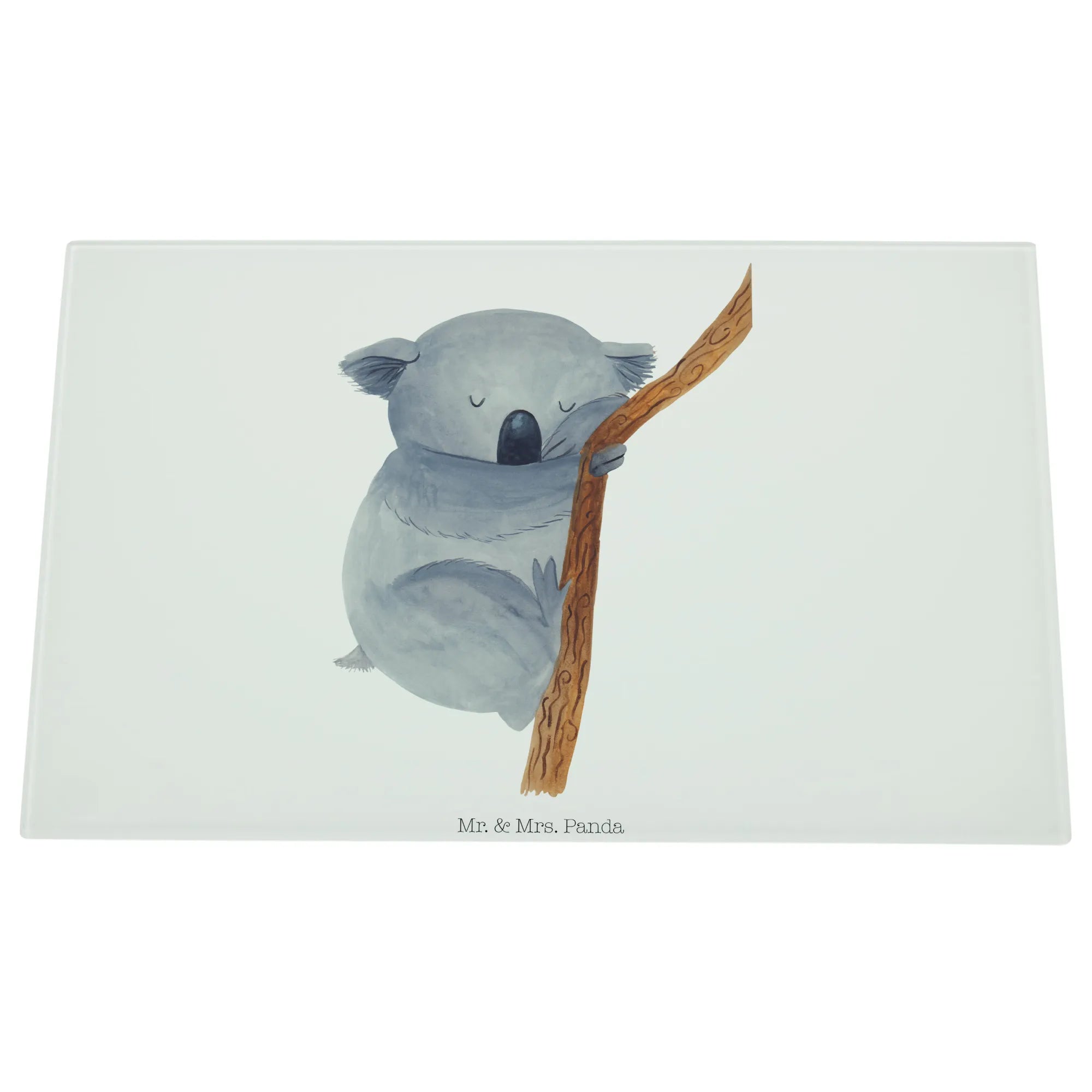 Glasschneidebrett Koalabär - Medium Glas Schneidbrett - mit Spruch - Weiß