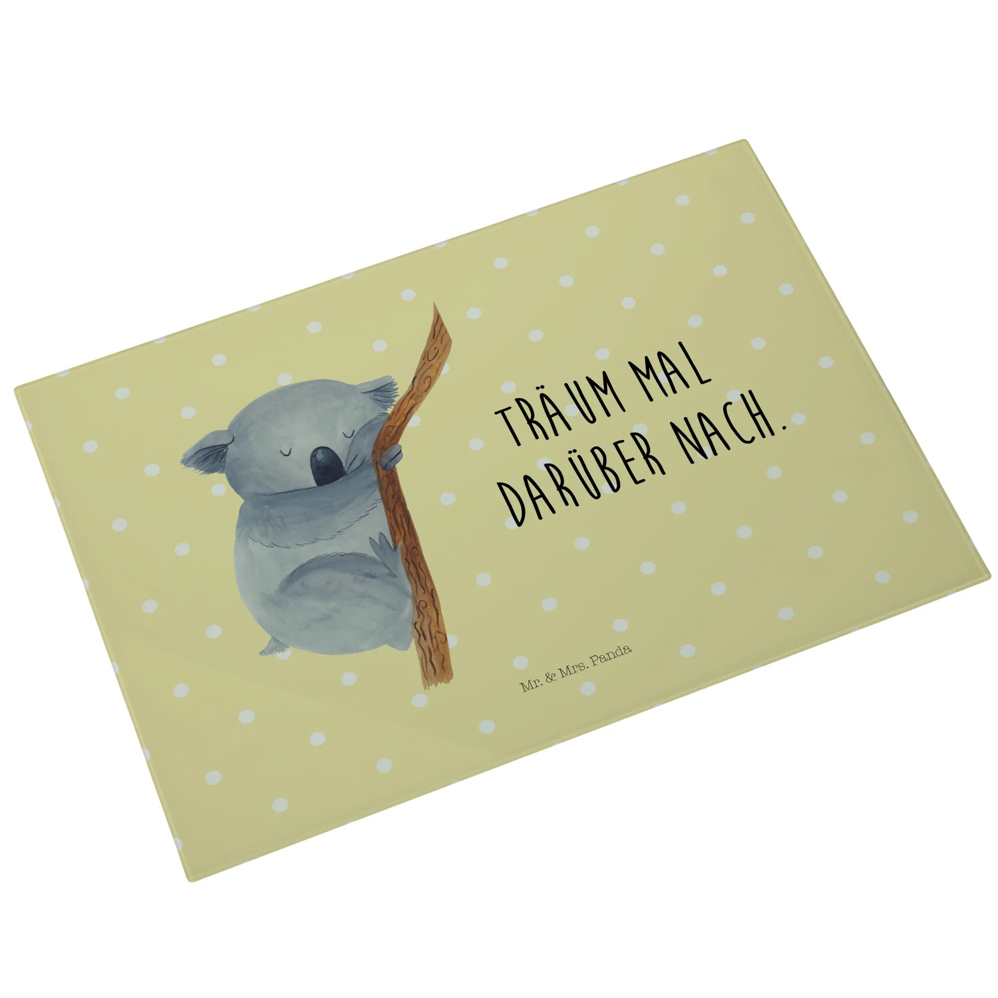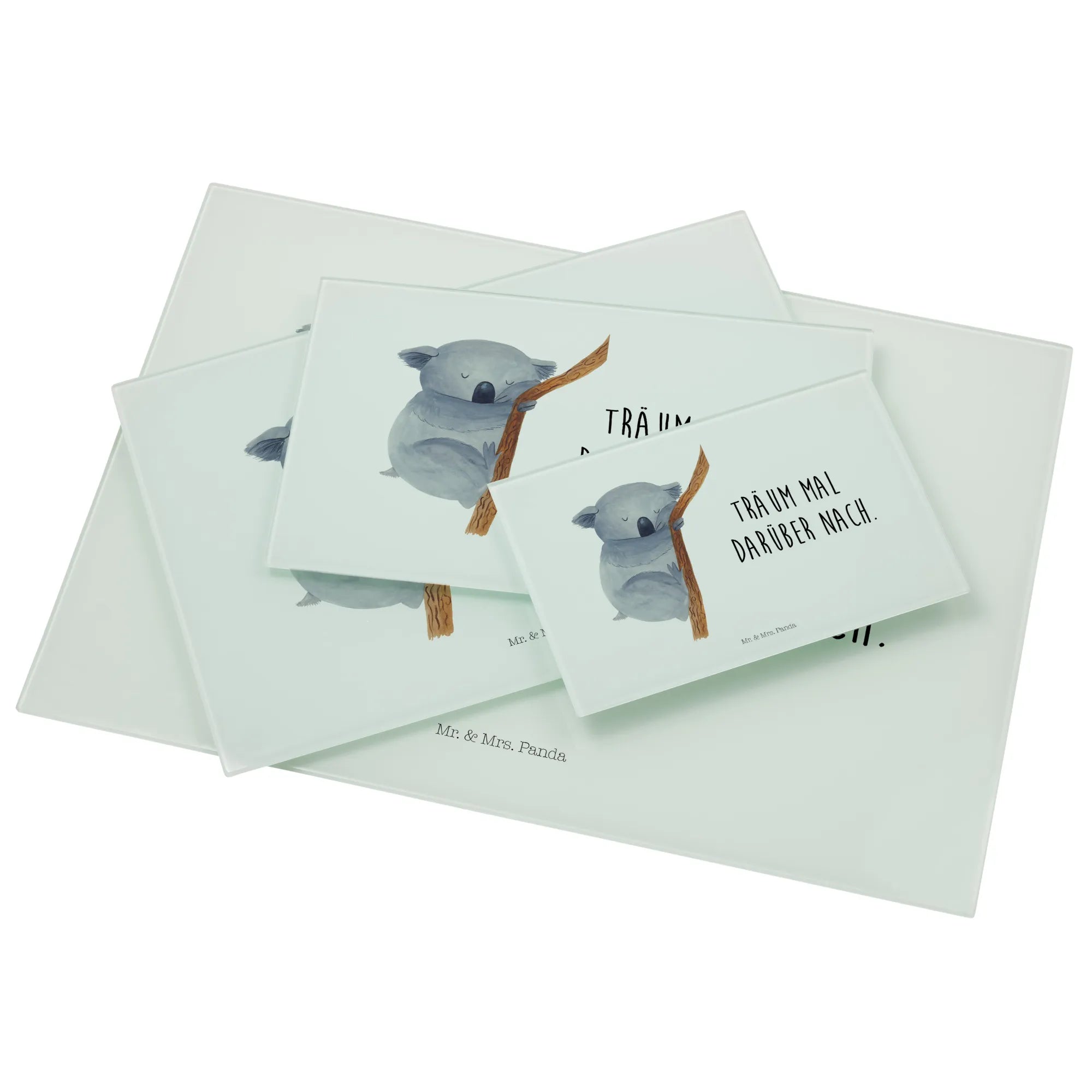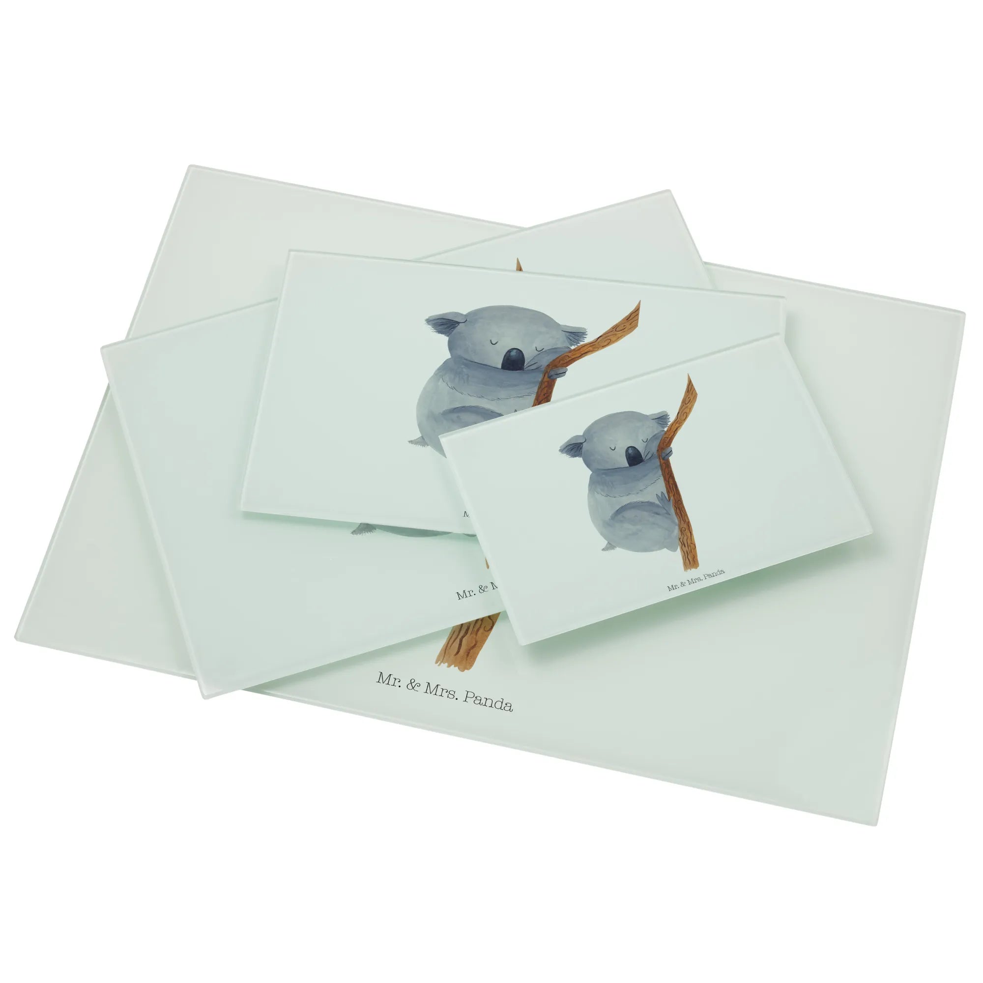 Entdecke das XL Glas Schneidebrett mit dem traumhaften Koalabär-Motiv aus der Small World Kollektion von Mr. & Mrs. Panda!
