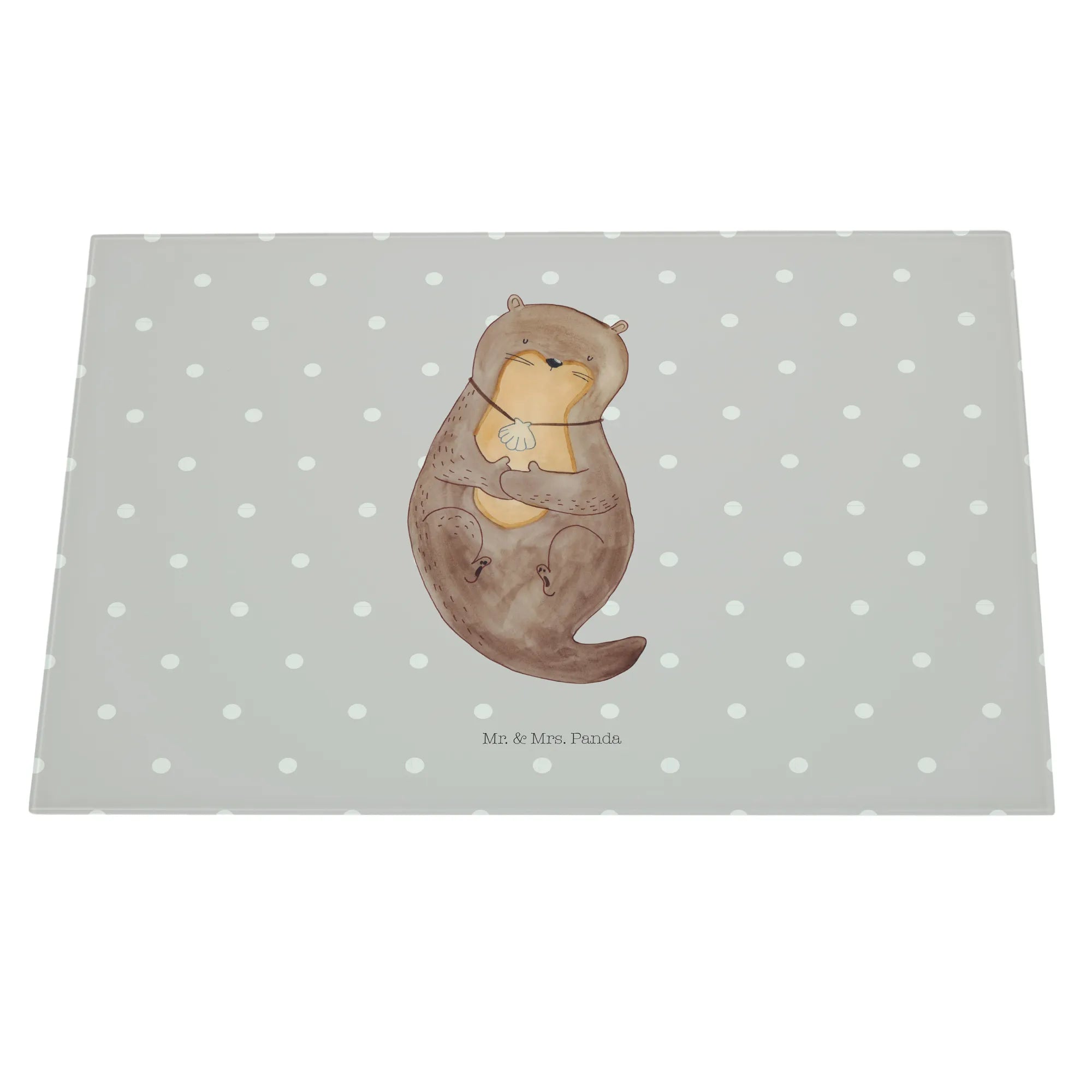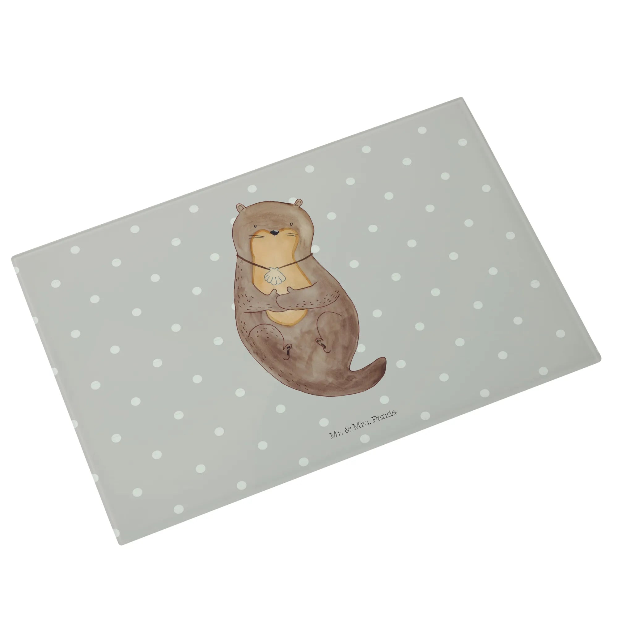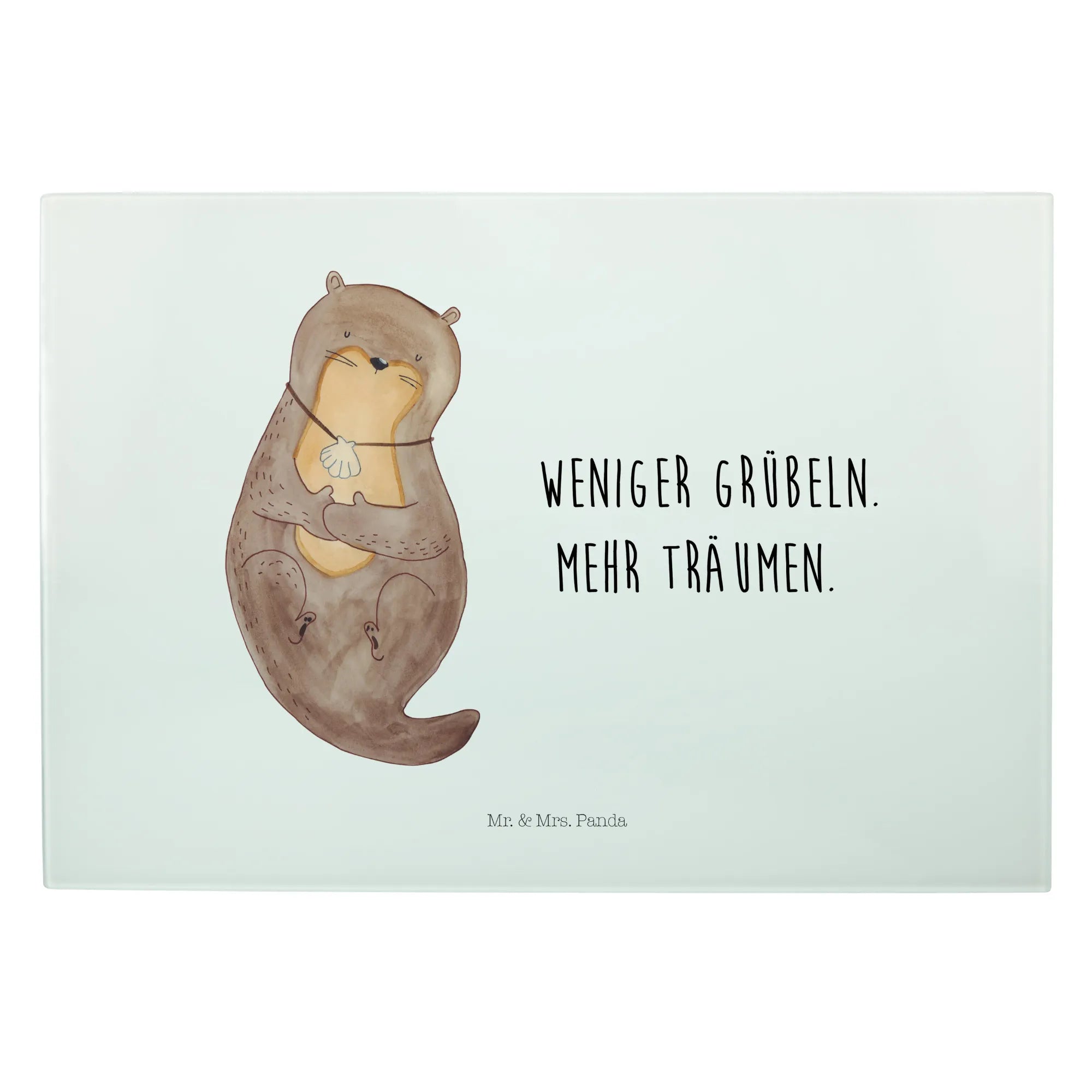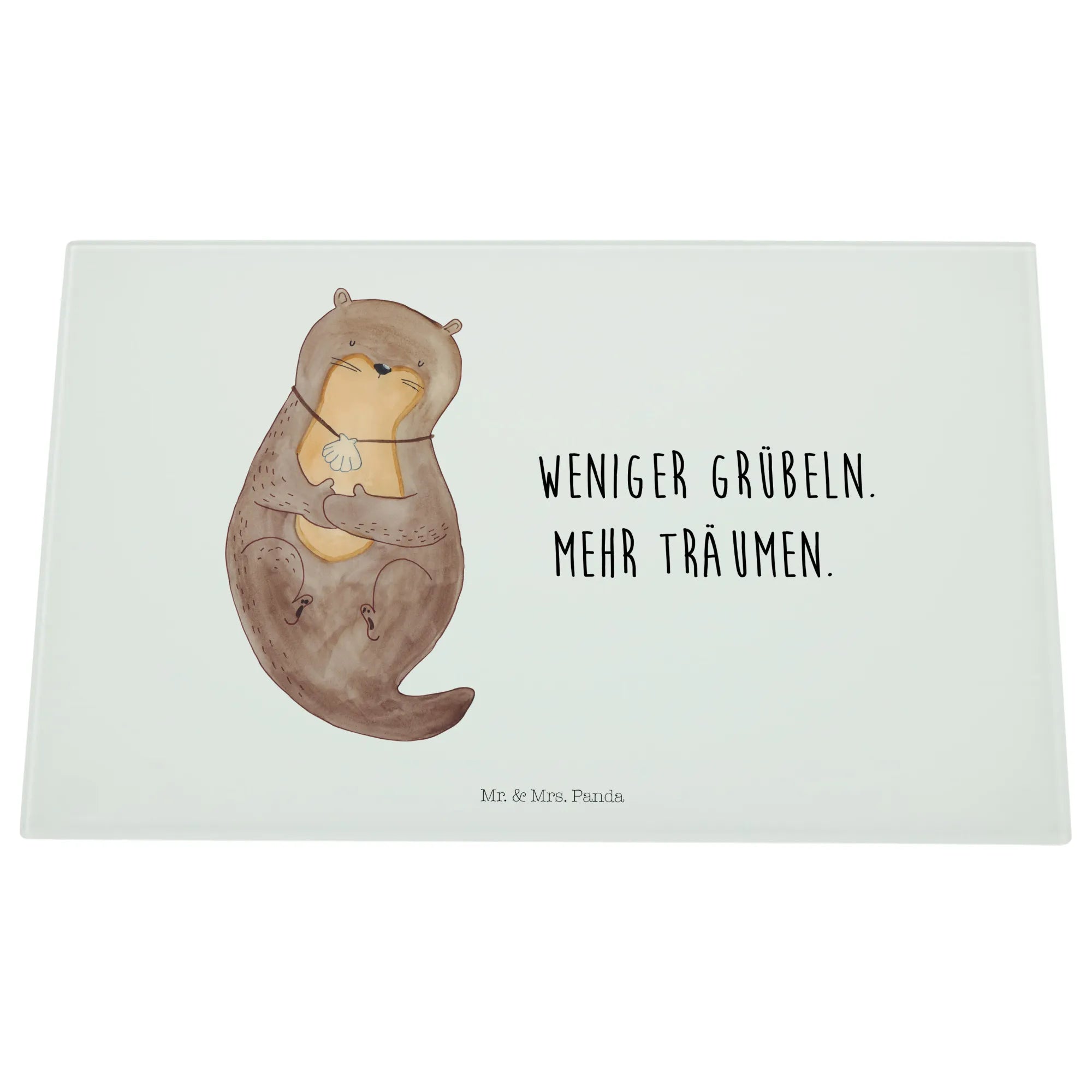 Dieses wunderschöne Medium Glas Schneidbrett von Mr. & Mrs. Panda mit dem zauberhaften Motiv "Otter mit Muschelmedaillon" ist nicht nur ein praktisches Küchenutensil, sondern auch ein echter Blickfang in deiner Küche!