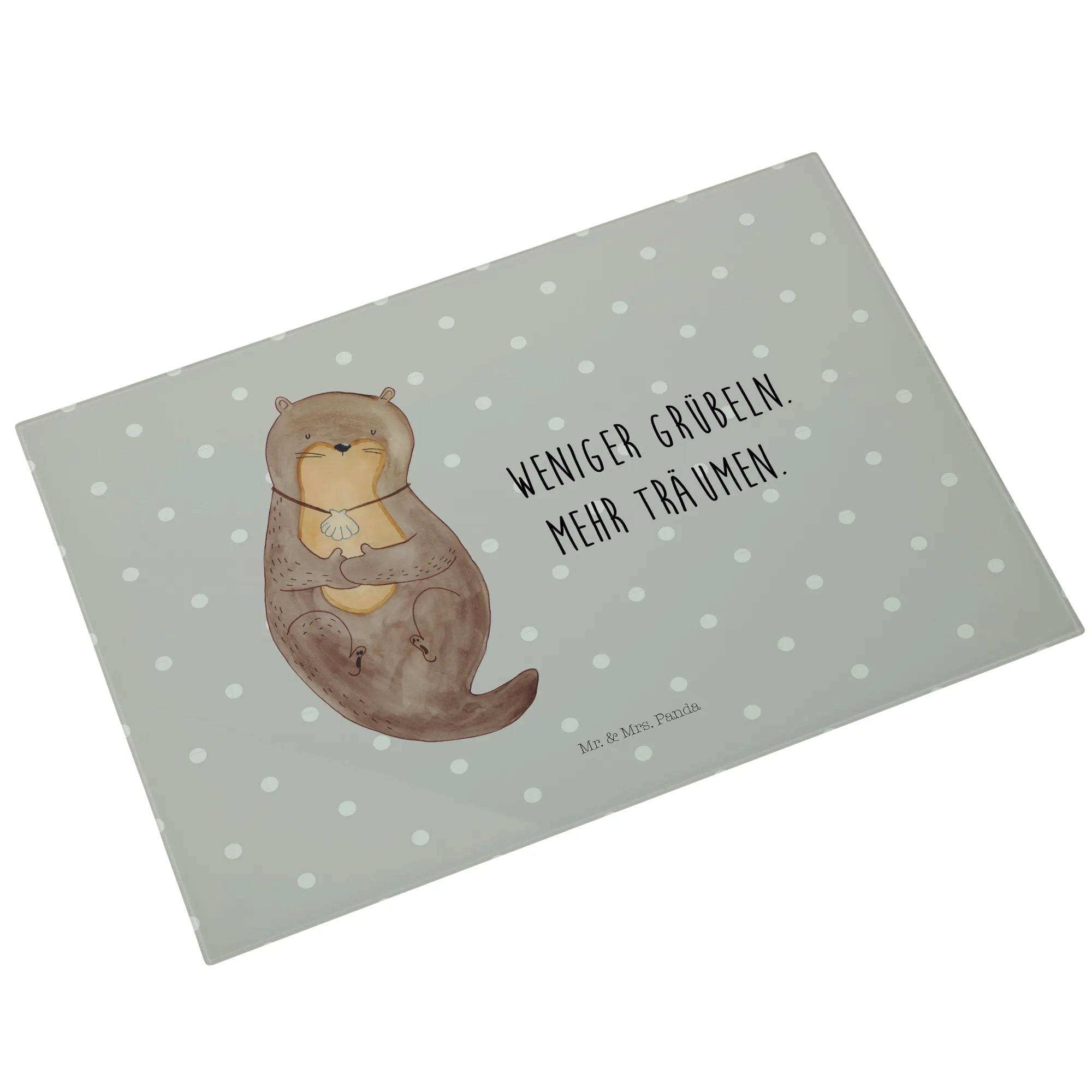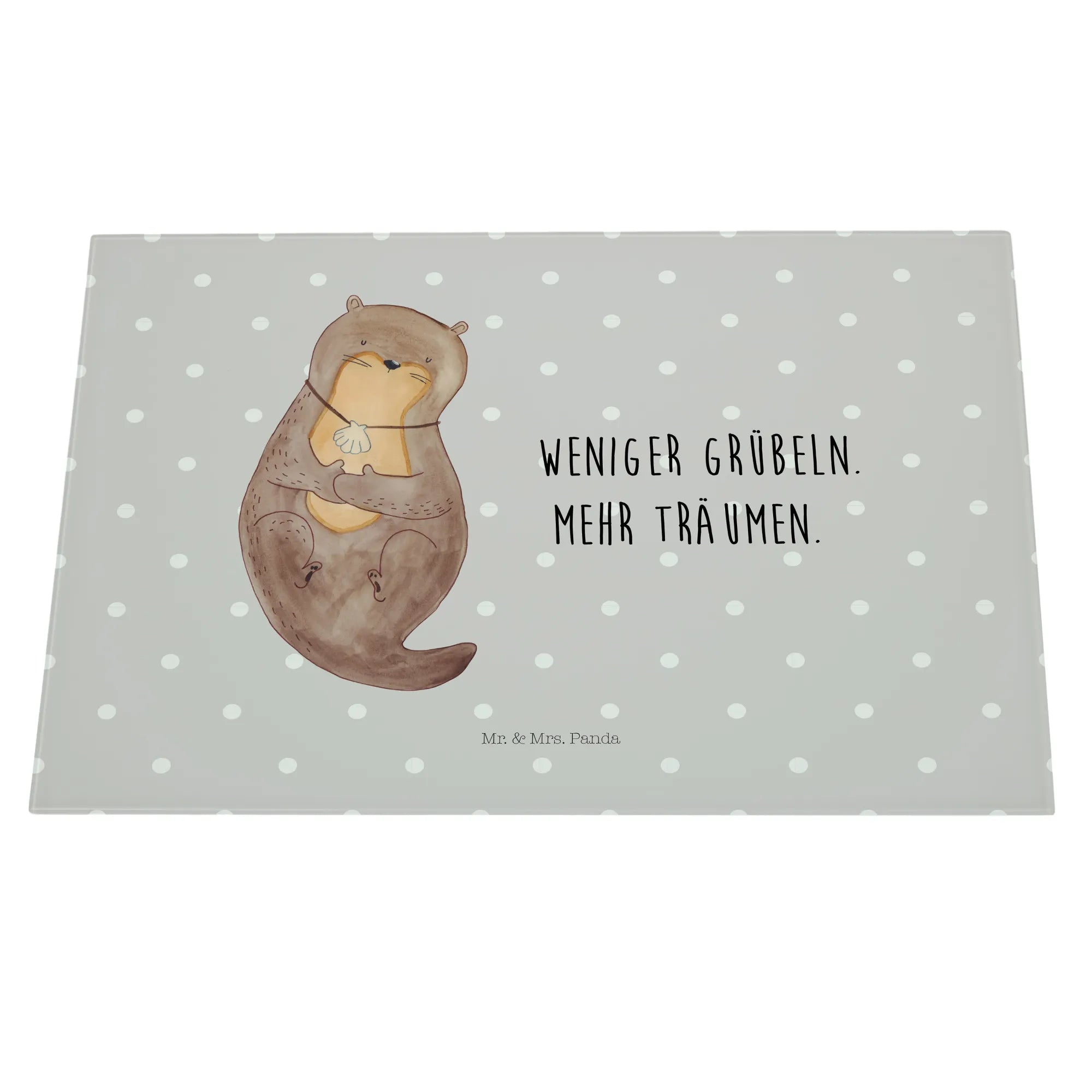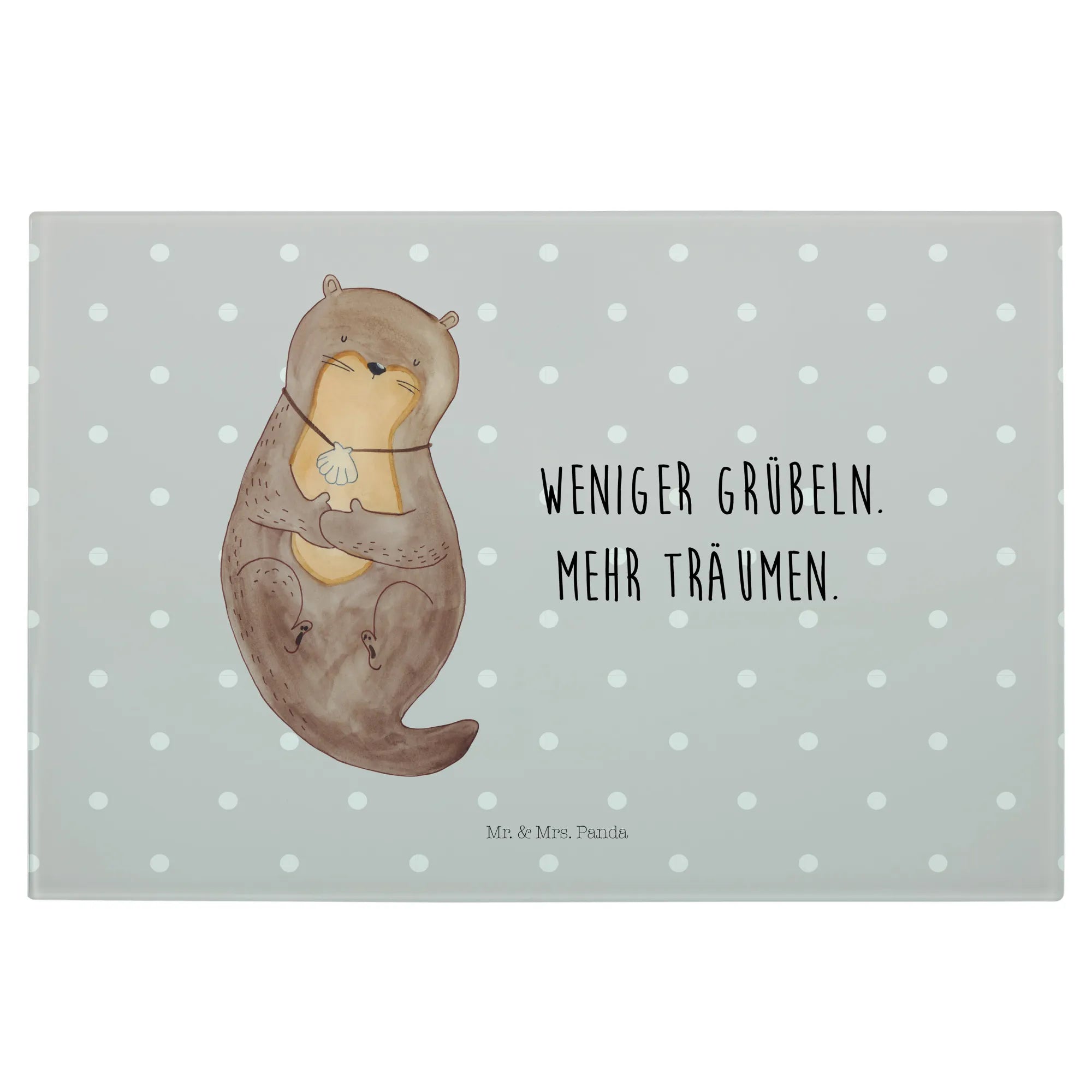 Dieses wunderschöne Medium Glas Schneidbrett von Mr. & Mrs. Panda mit dem zauberhaften Motiv "Otter mit Muschelmedaillon" ist nicht nur ein praktisches Küchenutensil, sondern auch ein echter Blickfang in deiner Küche!