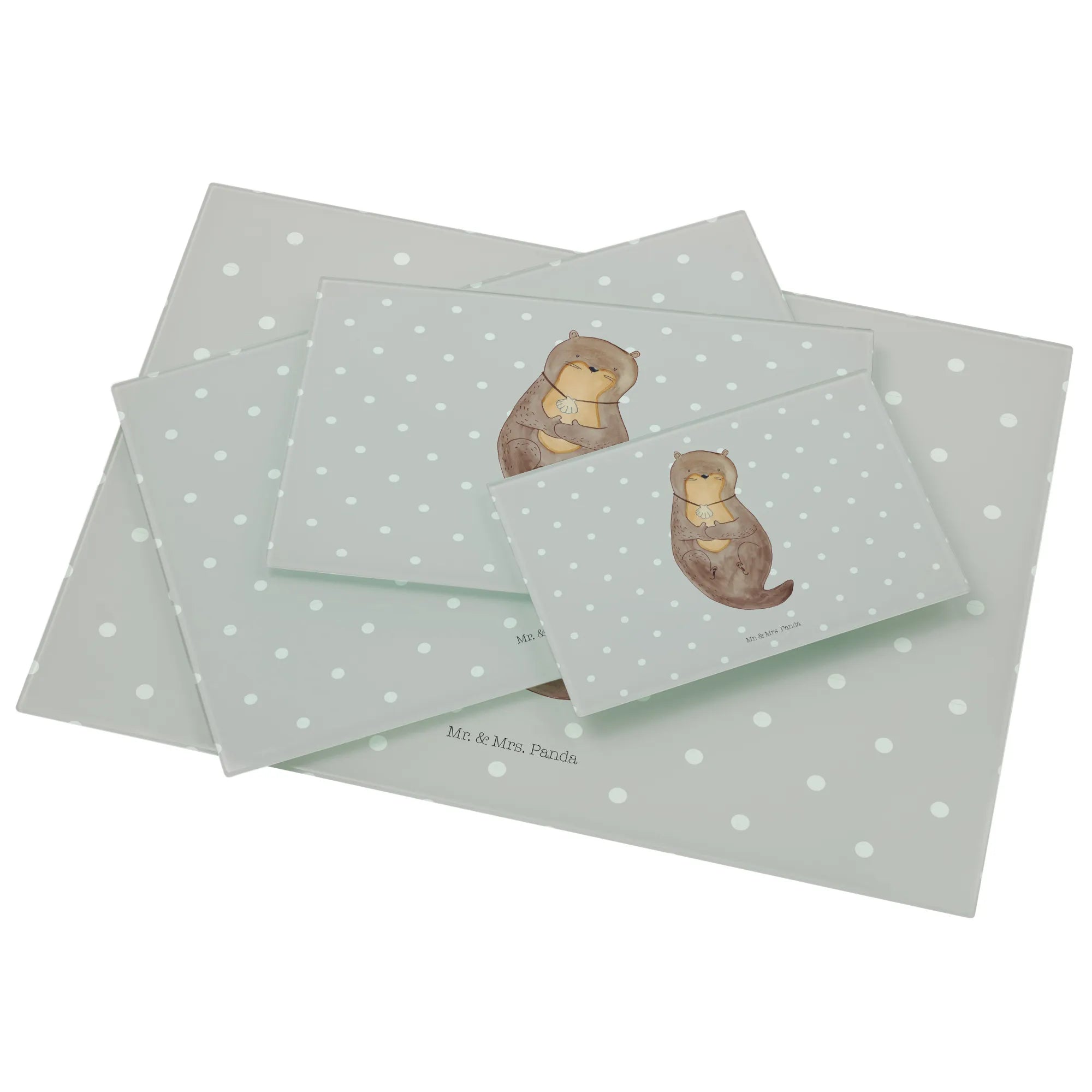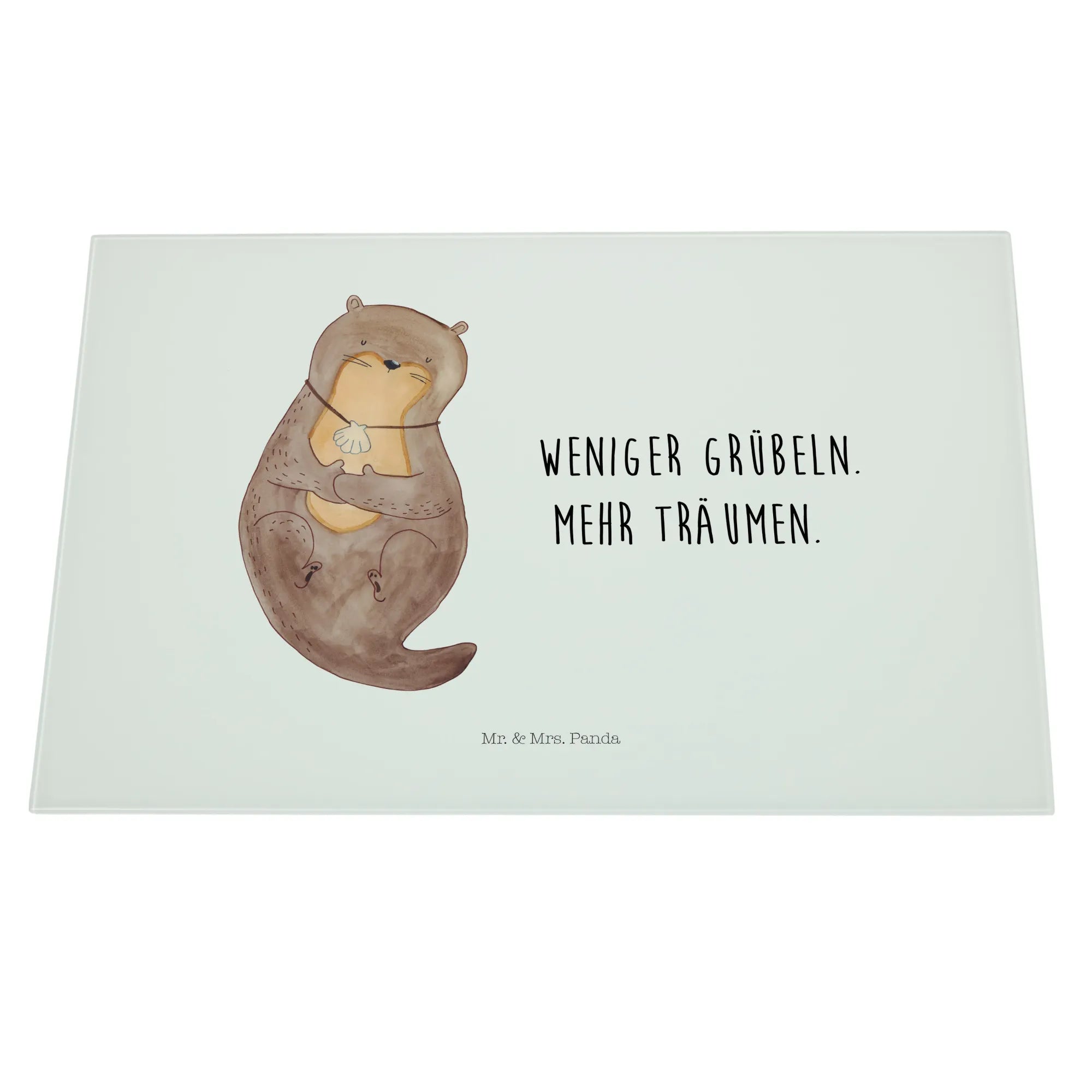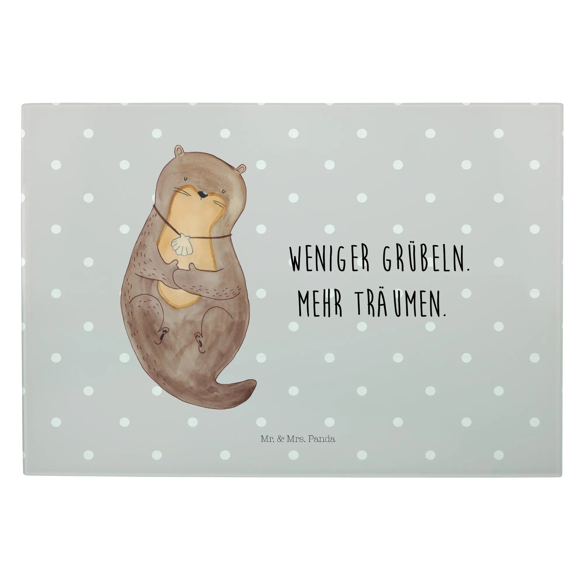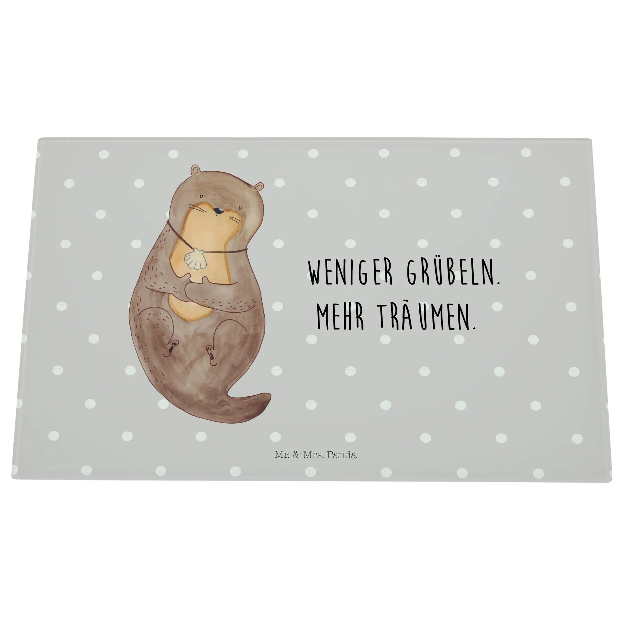 Dieses wunderschöne Medium Glas Schneidbrett von Mr. & Mrs. Panda mit dem zauberhaften Motiv "Otter mit Muschelmedaillon" ist nicht nur ein praktisches Küchenutensil, sondern auch ein echter Blickfang in deiner Küche!