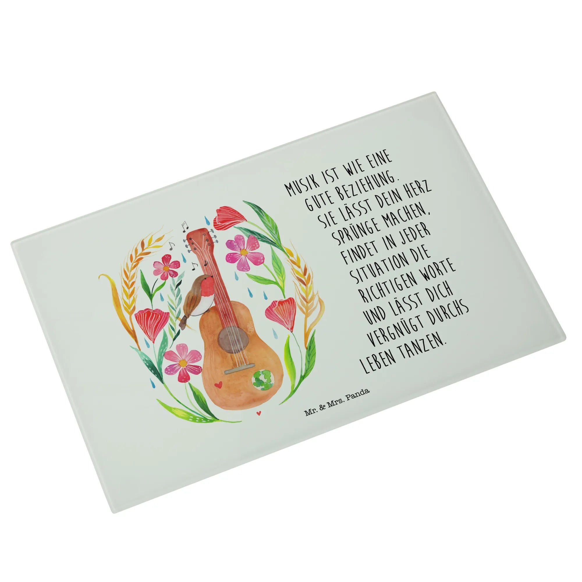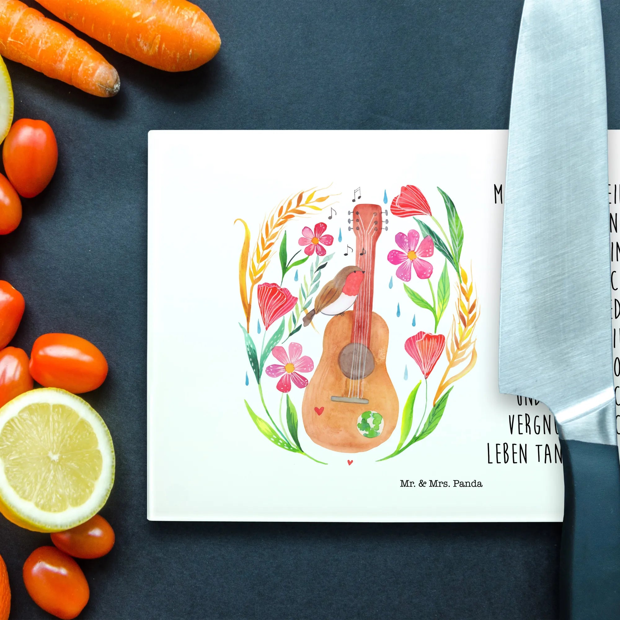 Ein Geschenk, das Herz und Küche erfüllt: Du suchst ein besonderes Präsent für Musiker, Sänger, Gitarristen oder Naturliebhaber? Unser XL Glasschneidebrett "Rotkehlchen Gitarre" aus der Collection Wild & Free von Mr. & Mrs. Panda vereint praktische Eigenschaften mit liebevoller Illustrationskunst. Die zarte Handzeichnung von Mrs. Panda macht das Brett zu einem dekorativen Blickfang in jeder Küche.