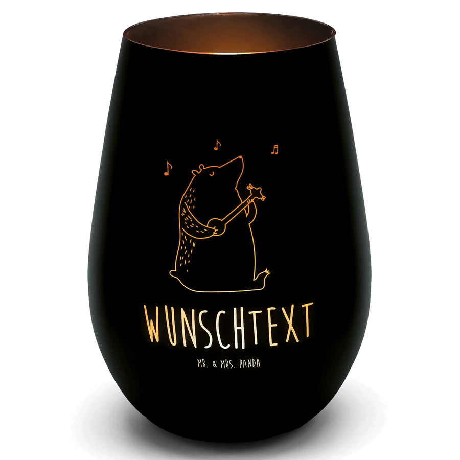 Gold Windlicht Personalisiert Bär Gitarre - Schwarz