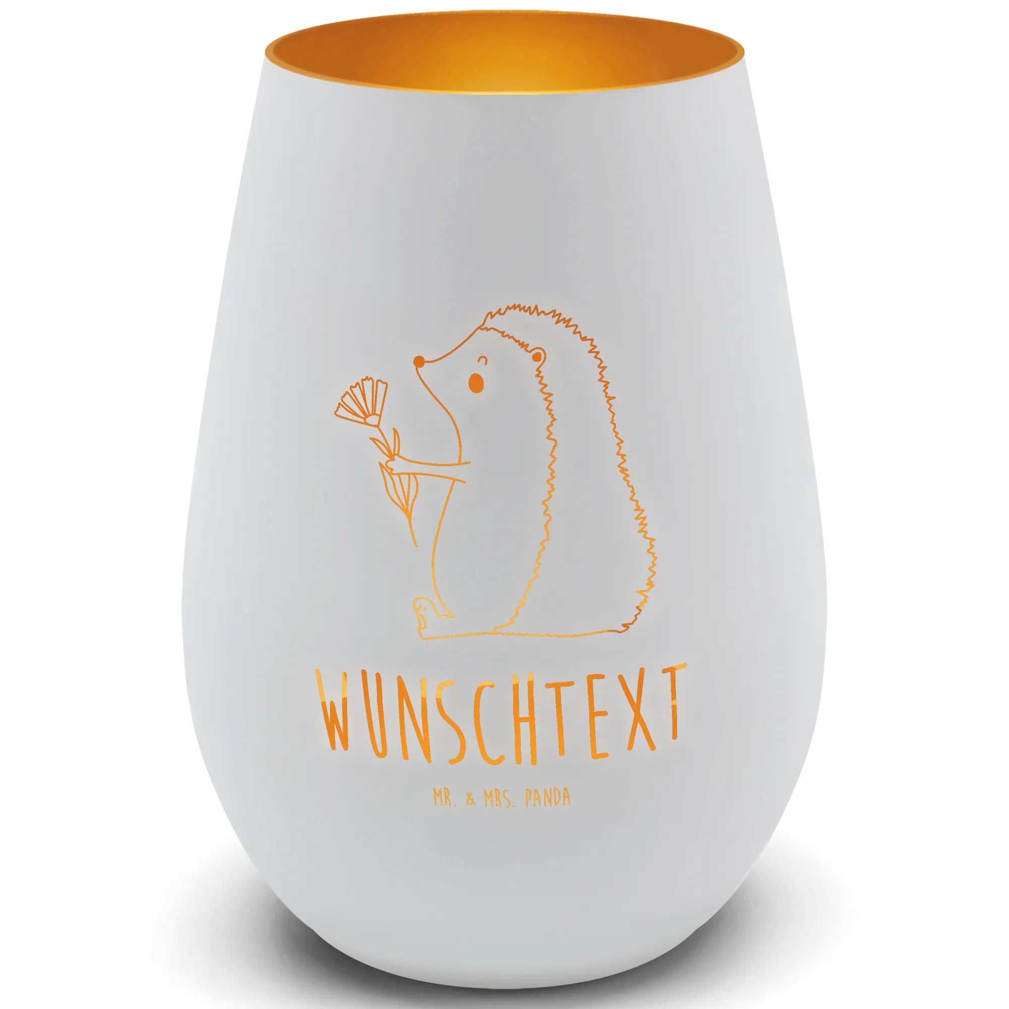 Entdecke unser wunderschönes und edles Gold Windlicht Personalisiert mit dem entzückenden Igel-Motiv von Mr. & Mrs. Panda!