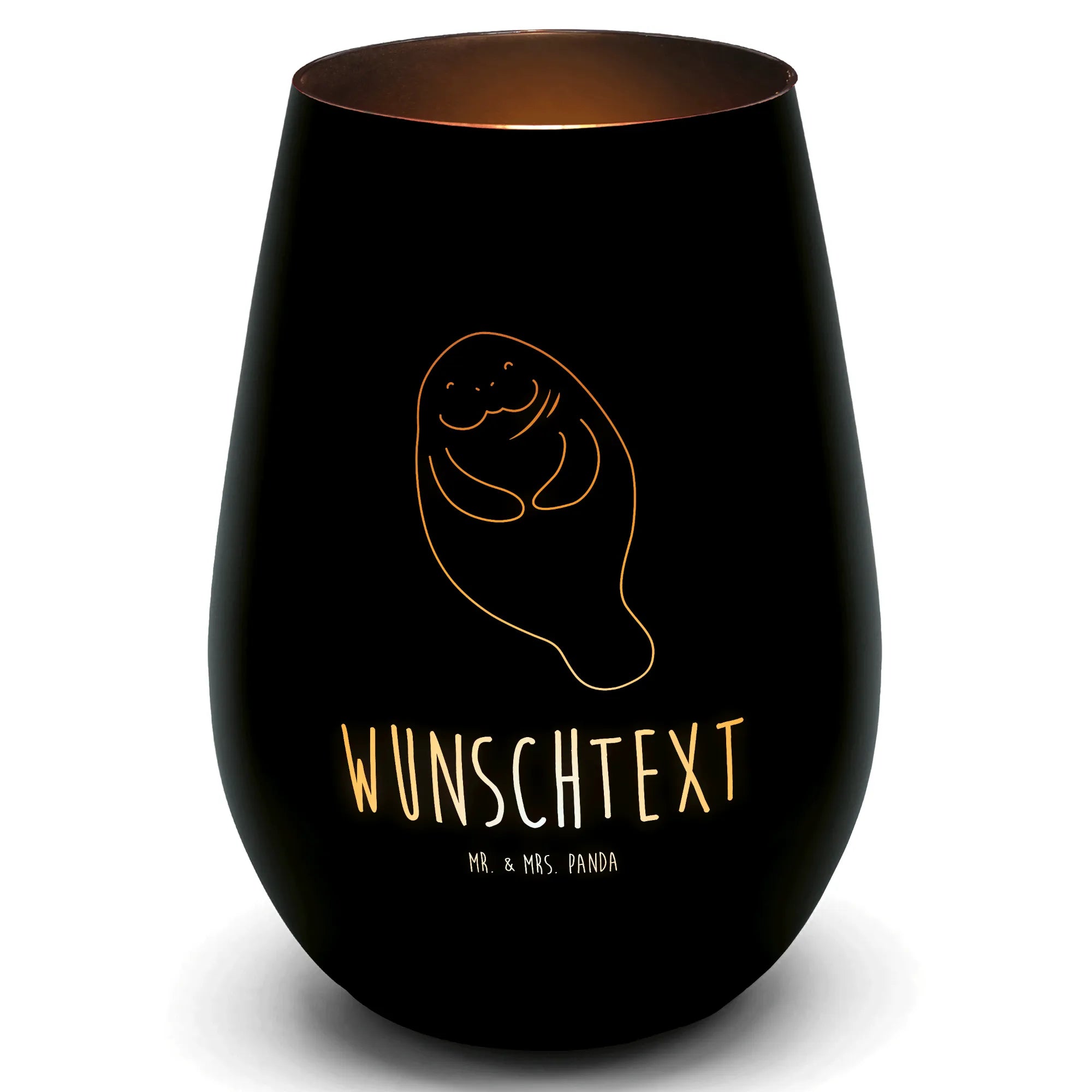 Gold Windlicht Personalisiert Seekuh Happy - Schwarz