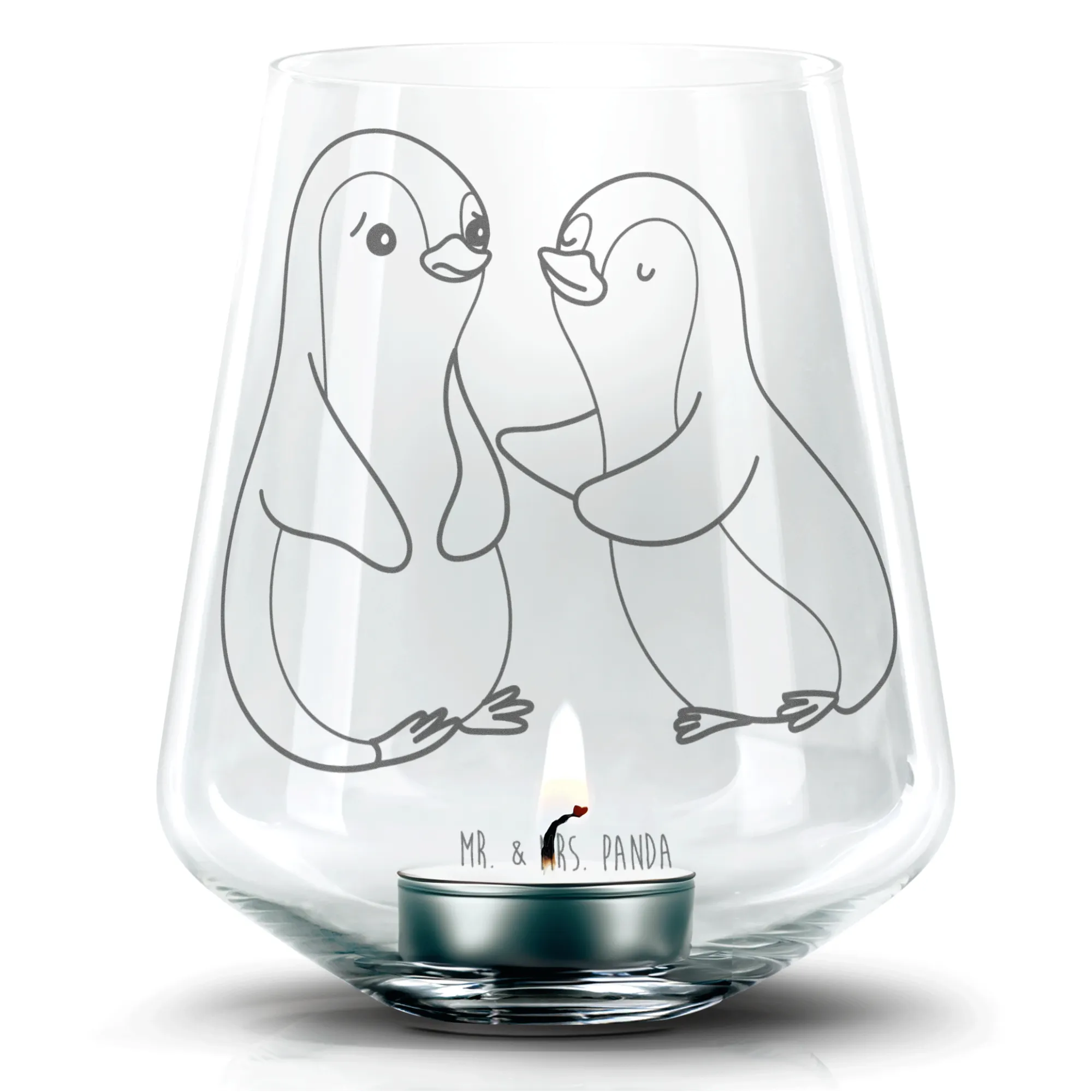 Gravur Windlicht Pinguine trösten - mit Spruch