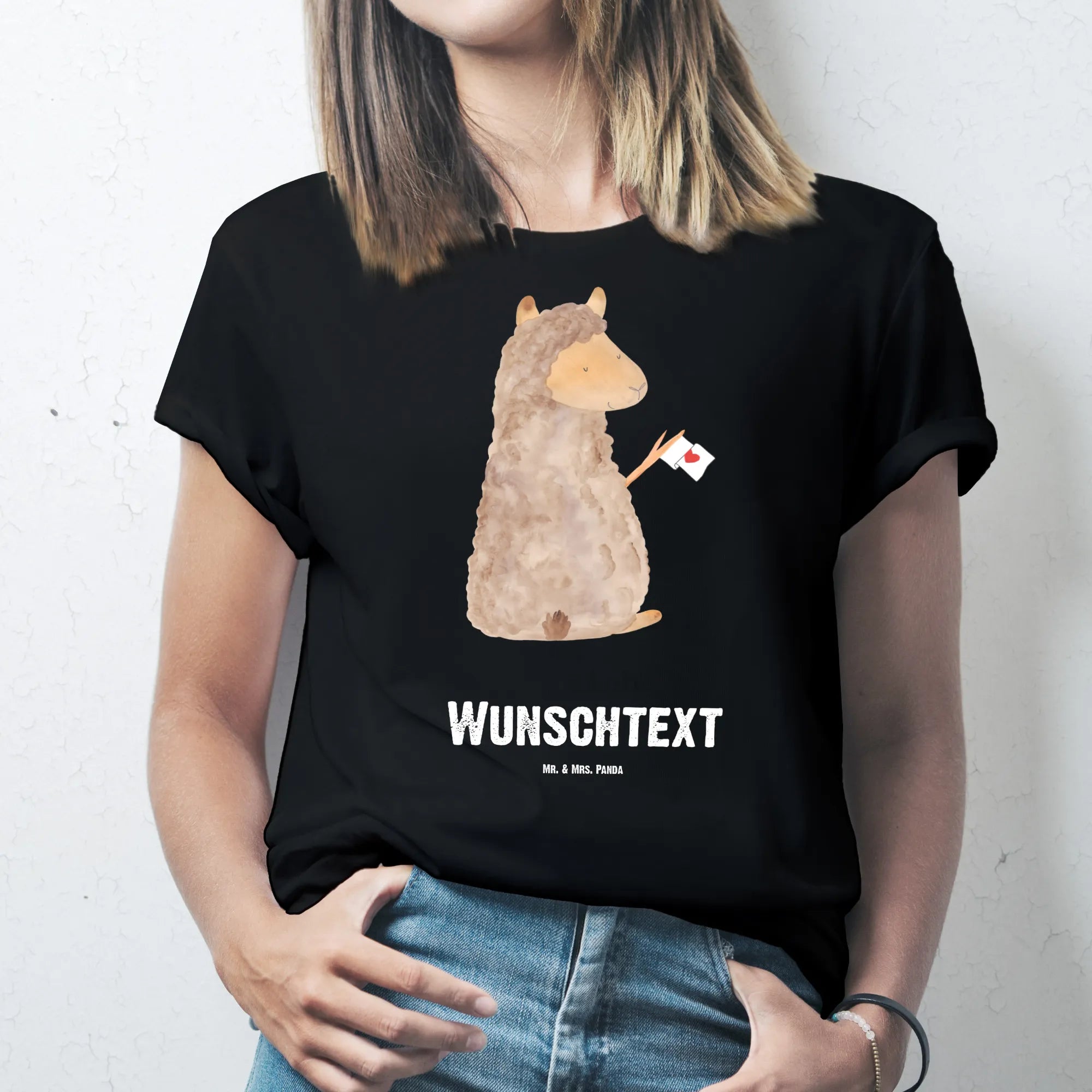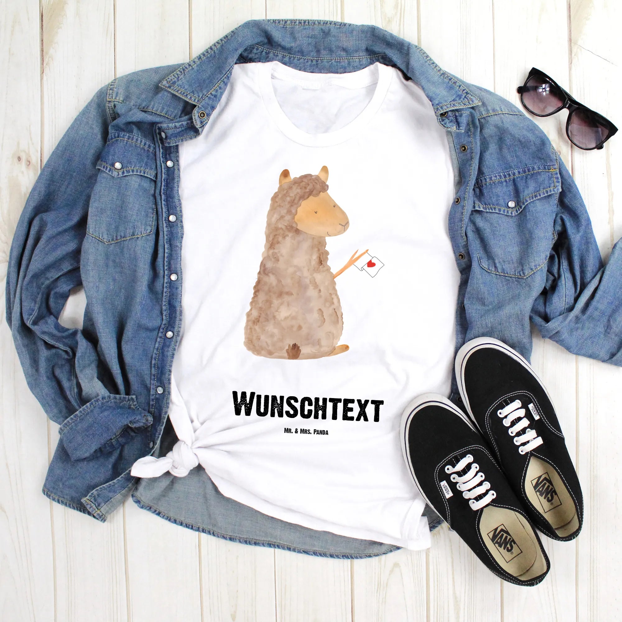 Größe M Personalisiertes T-Shirt „Alpaka Fahne“ von Mr. & Mrs. Panda