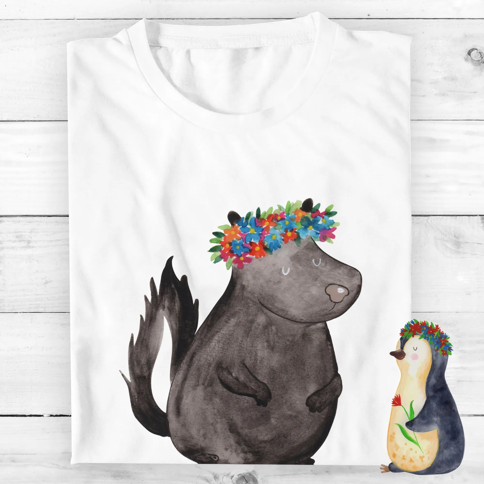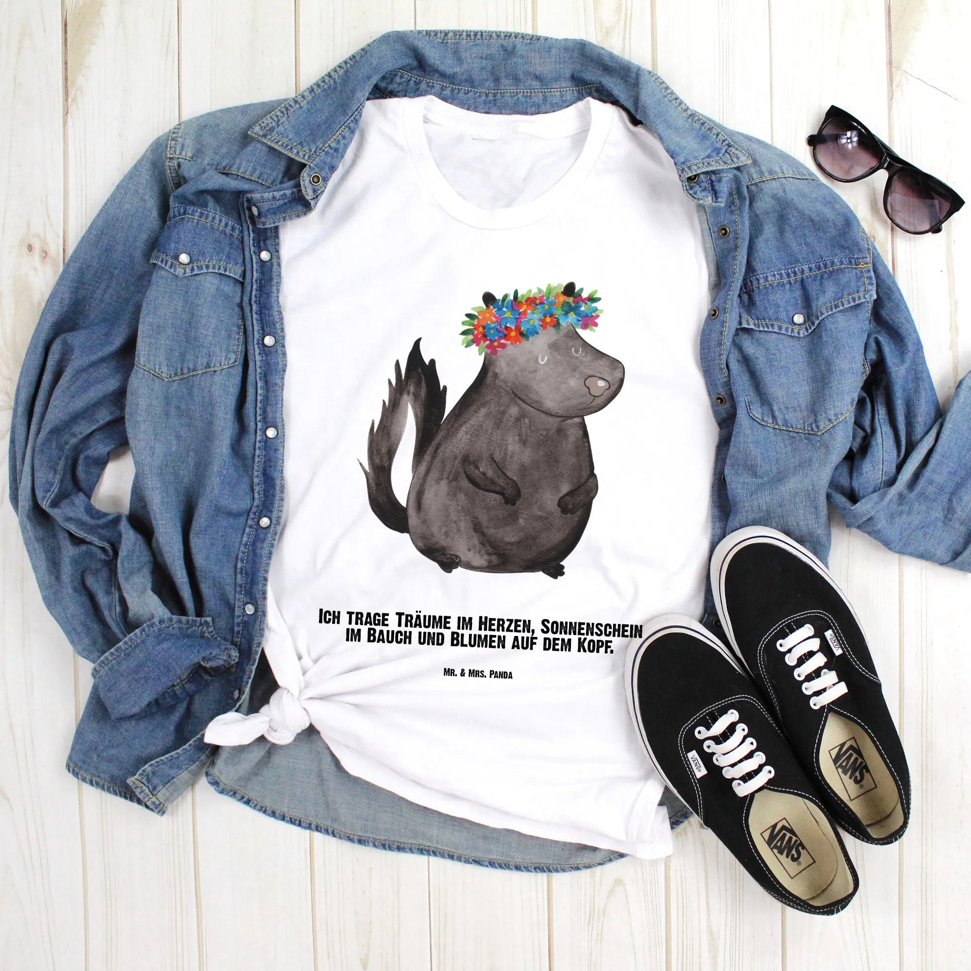 Das Größe S personalisierte T-Shirt Stinktier Blumenmädchen ist das perfekte Geschenk für alle, die Natur und Tiere lieben! Mit seinem einzigartigen Design zeigt es ein süßes Stinktier, das mit einem bunten Blumenkranz geschmückt ist. Diese zauberhafte Kreation von Mr. & Mrs. Panda bringt Freude und Farbe in jeden Kleiderschrank.