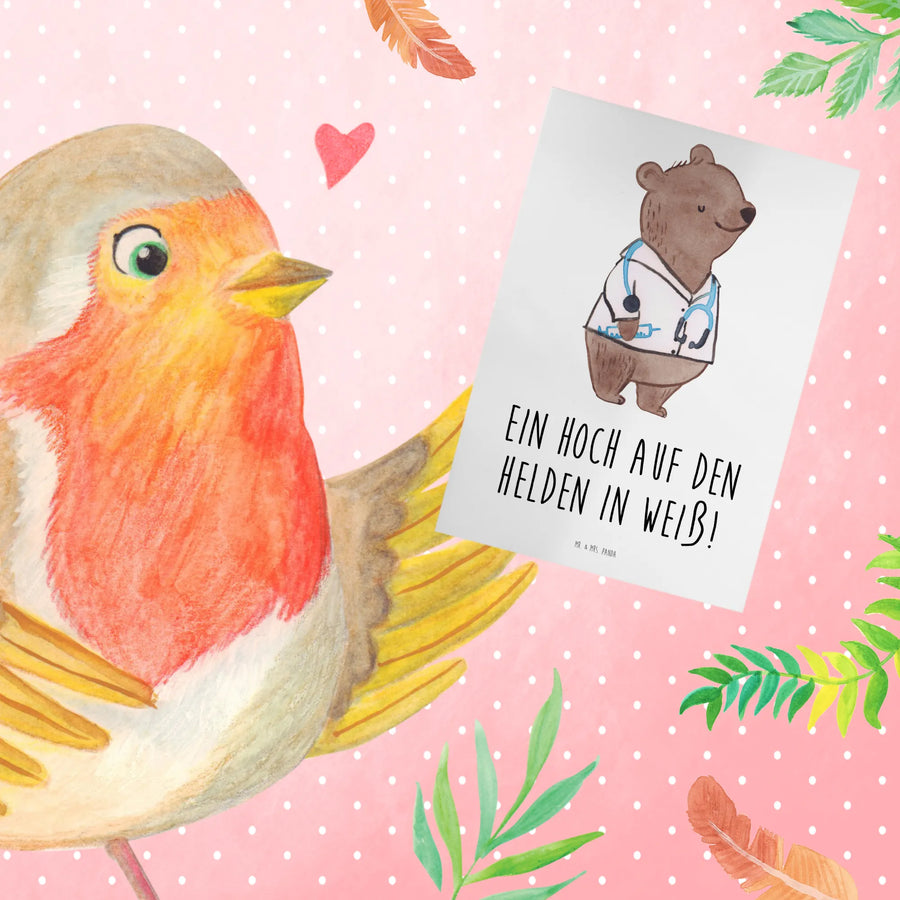 Die Grußkarte "Arzt" aus der Dankeschön-Kollektion von Mr. & Mrs. Panda ist das perfekte Geschenk, um deine Dankbarkeit auf ganz besondere Weise auszudrücken. Mit dem liebevollen Motiv und dem Slogan "Ein Hoch auf den Helden in Weiß!" bringst du deine Wertschätzung für die Menschen zum Ausdruck, die im Gesundheitswesen tätig sind. Egal, ob du dich bei einem Arzt, einem Pfleger oder einem medizinischen Fachpersonal bedanken möchtest, diese Karte ist eine wunderbare Wahl.