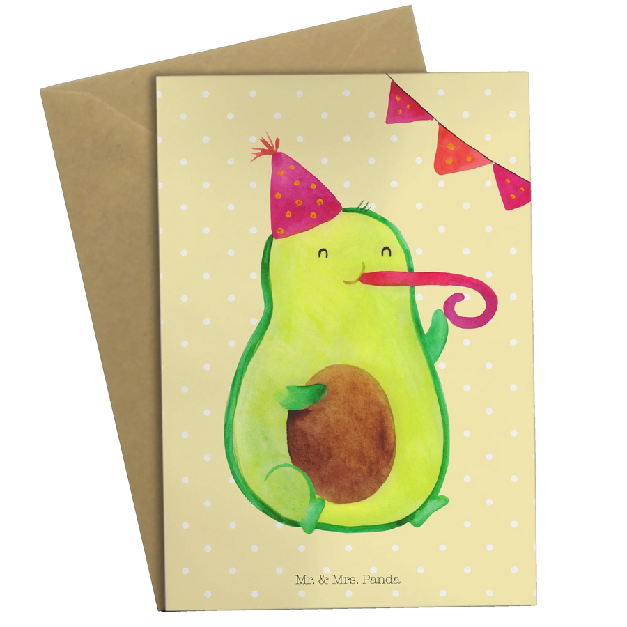 Die Grußkarte "Avocado Party Time" von Mr. & Mrs. Panda ist das perfekte Geschenk für alle, die das Leben lieben und gerne positive Stimmung verbreiten!