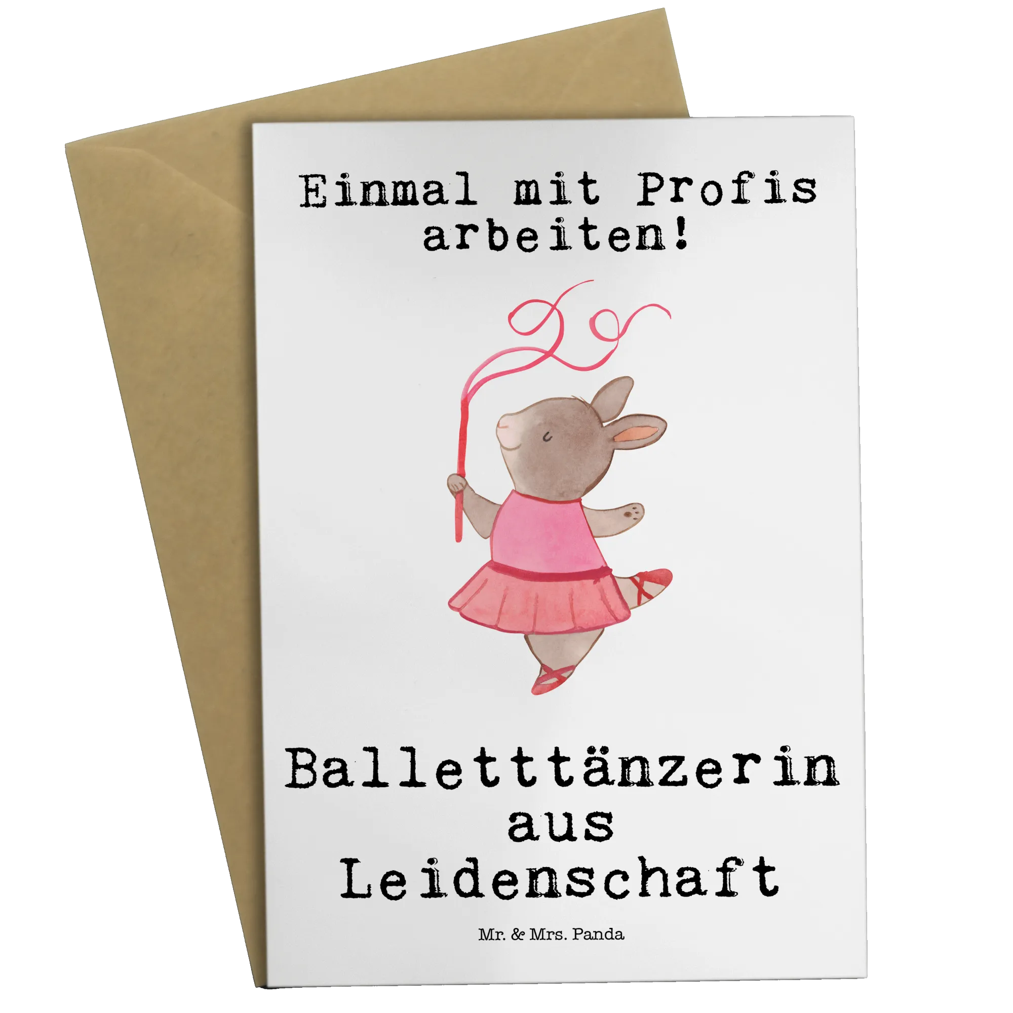 Entdecke die zauberhafte Grußkarte "Balletttänzerin aus Leidenschaft" von Mr. & Mrs. Panda! Diese einzigartige Klappkarte ist nicht nur ein wunderschöner Blickfang, sondern auch ein perfekter Glücksbringer für alle Balletttänzerinnen und Tanzliebhaber.