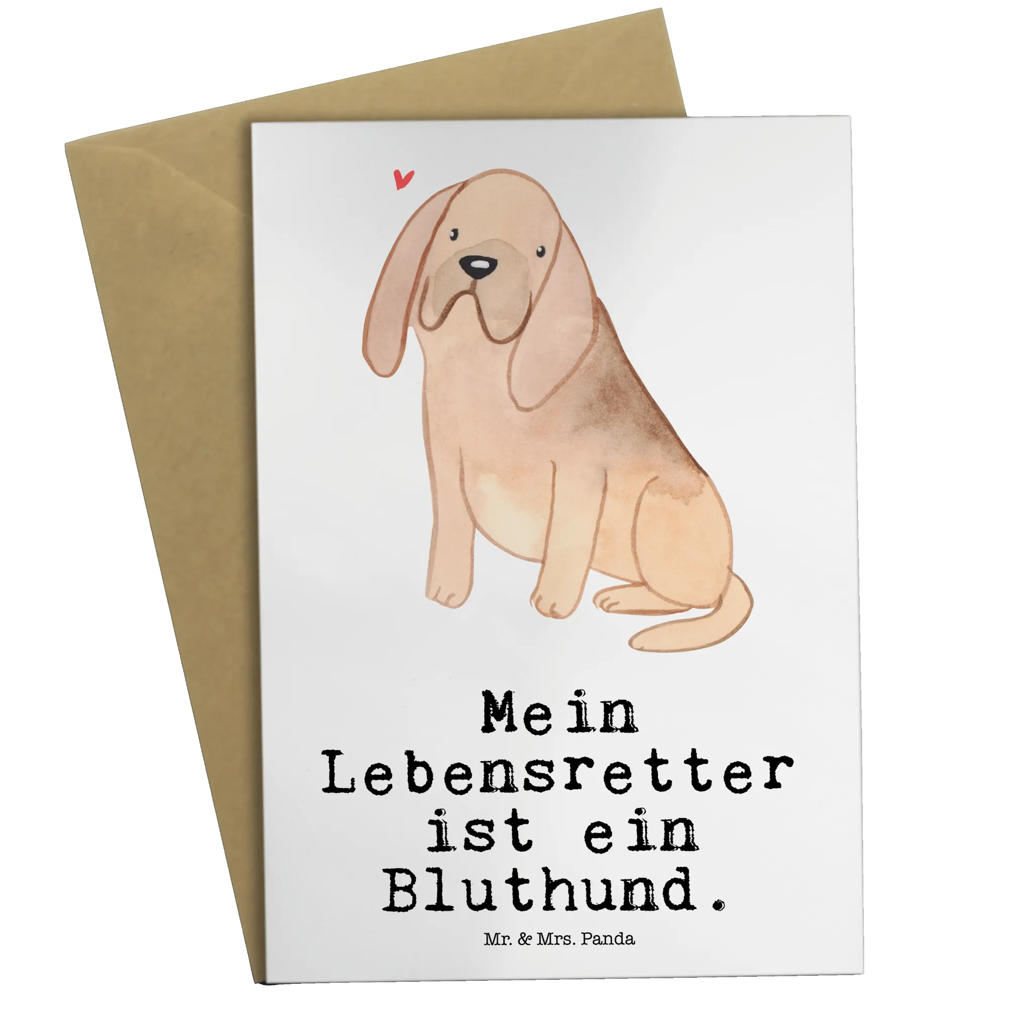 Die wunderschöne Grußkarte von Mr. & Mrs. Panda mit dem Motiv "Mein Lebensretter ist ein Bluthund" ist das perfekte Geschenk für Hundeliebhaber und Tierfreunde. Egal, ob zu Geburtstagen, Hochzeiten oder einfach nur um Danke zu sagen – mit dieser Karte bringst Du garantiert ein Lächeln auf das Gesicht des Beschenkten! 🎉