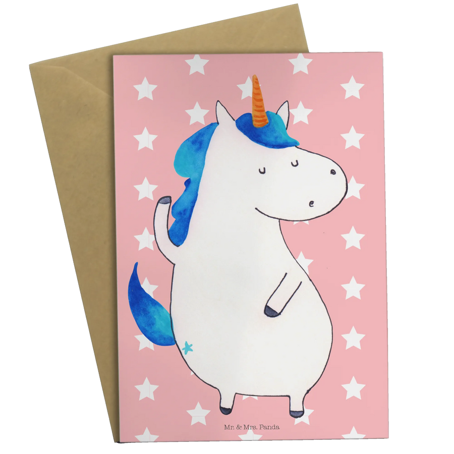 Schenke ein Lächeln und ein Stück Einhorn-Magie – mit der Einhorn Mann Grußkarte von Mr. & Mrs. Panda. Perfekt als Einladungskarte, Glückwunschkarte oder Geburtstagskarte für alle Unicorn-Fans.