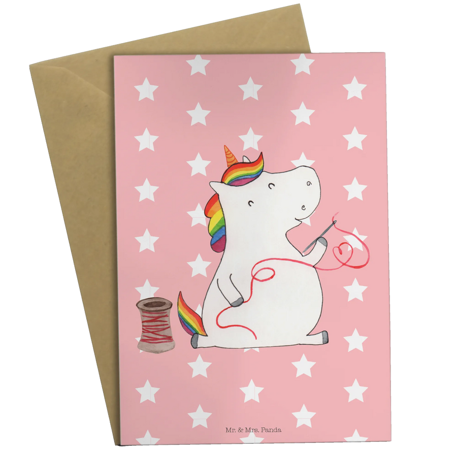 Die Grußkarte "Einhorn Näherin" aus der zauberhaften Einhorn-Kollektion von Mr. & Mrs. Panda ist das perfekte Geschenk für kreative Seelen und Einhornliebhaber! 🎉