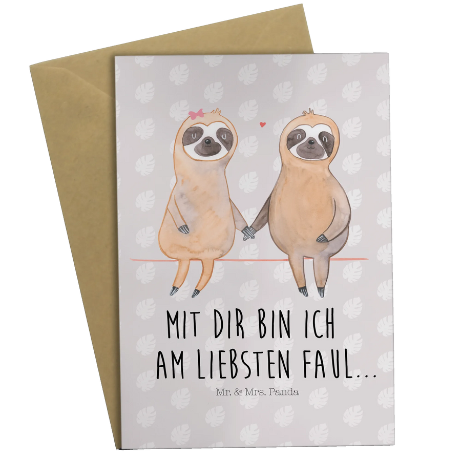 Mit ihrem eleganten Design und dem kraftvollen Spruch „Mit dir bin ich am Liebsten faul...“ wird diese Karte garantiert zum Blickfang. Und das Beste? Die Innenseite ist blanko, sodass du deine persönlichen Zeilen und Wünsche hineinschreiben kannst. Die Faultier-Kollektion von Mr. & Mrs. Panda ist einfach zauberhaft und wird jedes Faultier-Liebhaber-Herz höher schlagen lassen.