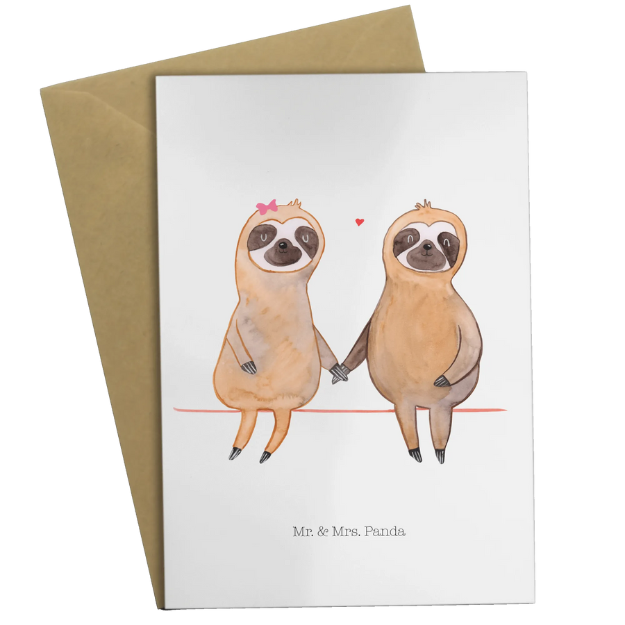 Entdecke die perfekte Grußkarte für jeden Anlass mit unserem liebevoll gestalteten Faultier Pärchen! Diese einzigartige Grußkarte von Mr. & Mrs. Panda begeistert durch ihr zuckersüßes Aquarell-Motiv. Die beiden Faultiere, die sich an den Händen halten, verkörpern eine wunderbare Botschaft der Liebe und Langsamkeit.