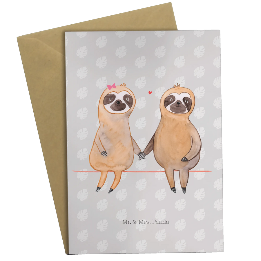 Entdecke die perfekte Grußkarte für jeden Anlass mit unserem liebevoll gestalteten Faultier Pärchen! Diese einzigartige Grußkarte von Mr. & Mrs. Panda begeistert durch ihr zuckersüßes Aquarell-Motiv. Die beiden Faultiere, die sich an den Händen halten, verkörpern eine wunderbare Botschaft der Liebe und Langsamkeit.
