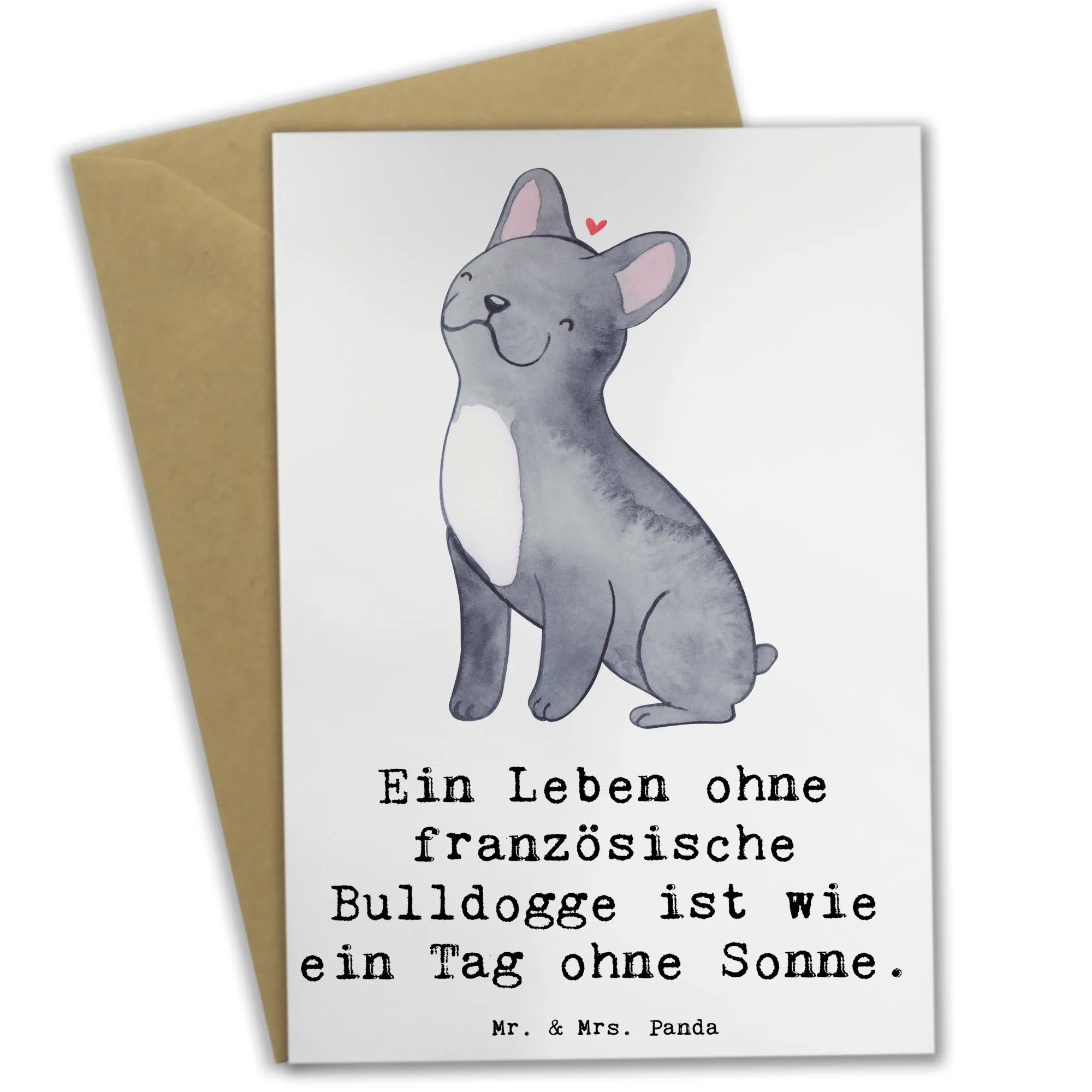 Die wunderschöne Grußkarte von Mr. & Mrs. Panda ist das perfekte Geschenk für jeden Hundefan, insbesondere für all jene, die die charmante Französische Bulldogge lieben. Mit ihrem niedlichen Design und dem liebevollen Spruch "Ein Leben ohne französische Bulldogge ist wie ein Tag ohne Sonne." bringt diese Karte ein Lächeln ins Gesicht und zaubert Freude in jedes Herz.