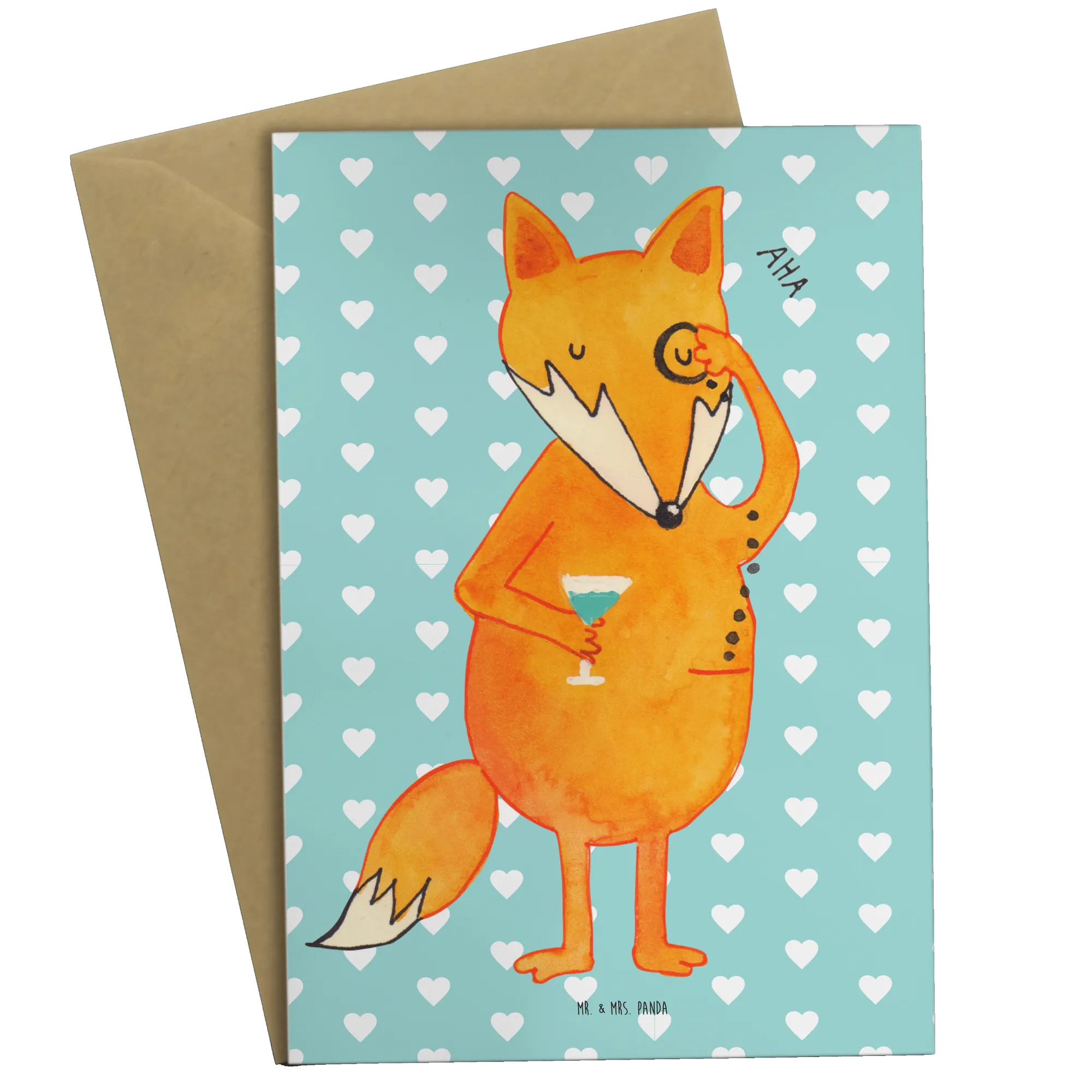 Mit einem stattlichen und niedlichen Fuchs, der entzückt mit einem Monokel am Auge, strahlt diese Karte nichts anderes als Freude und Persönlichkeit aus. Die liebevoll gestaltete Illustration ist lebhaft und farbenfroh, wobei jedes Detail mit viel Liebe zum Detail von Hand gezeichnet wurde.