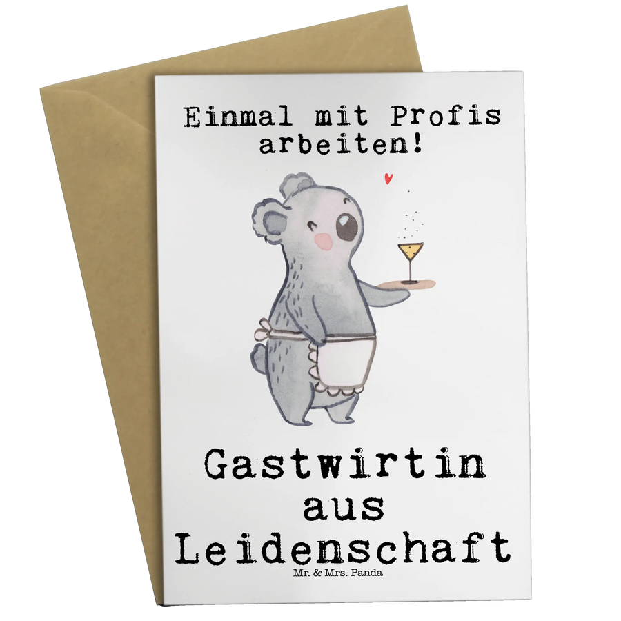 Entdecke die bezaubernde Grußkarte "Gastwirtin aus Leidenschaft" von Mr. & Mrs. Panda! Diese einzigartige Karte ist das perfekte Geschenk für alle, die im Gastgewerbe arbeiten oder eine Leidenschaft für die Gastronomie haben. Egal, ob du sie einem Kollegen zur Eröffnung seines neuen Lokals schenkst, einem Freund, der seine Karriere als Barkeeper startet, oder einfach nur für die Gastwirtin in deinem Leben – diese Karte ist immer eine tolle Wahl.