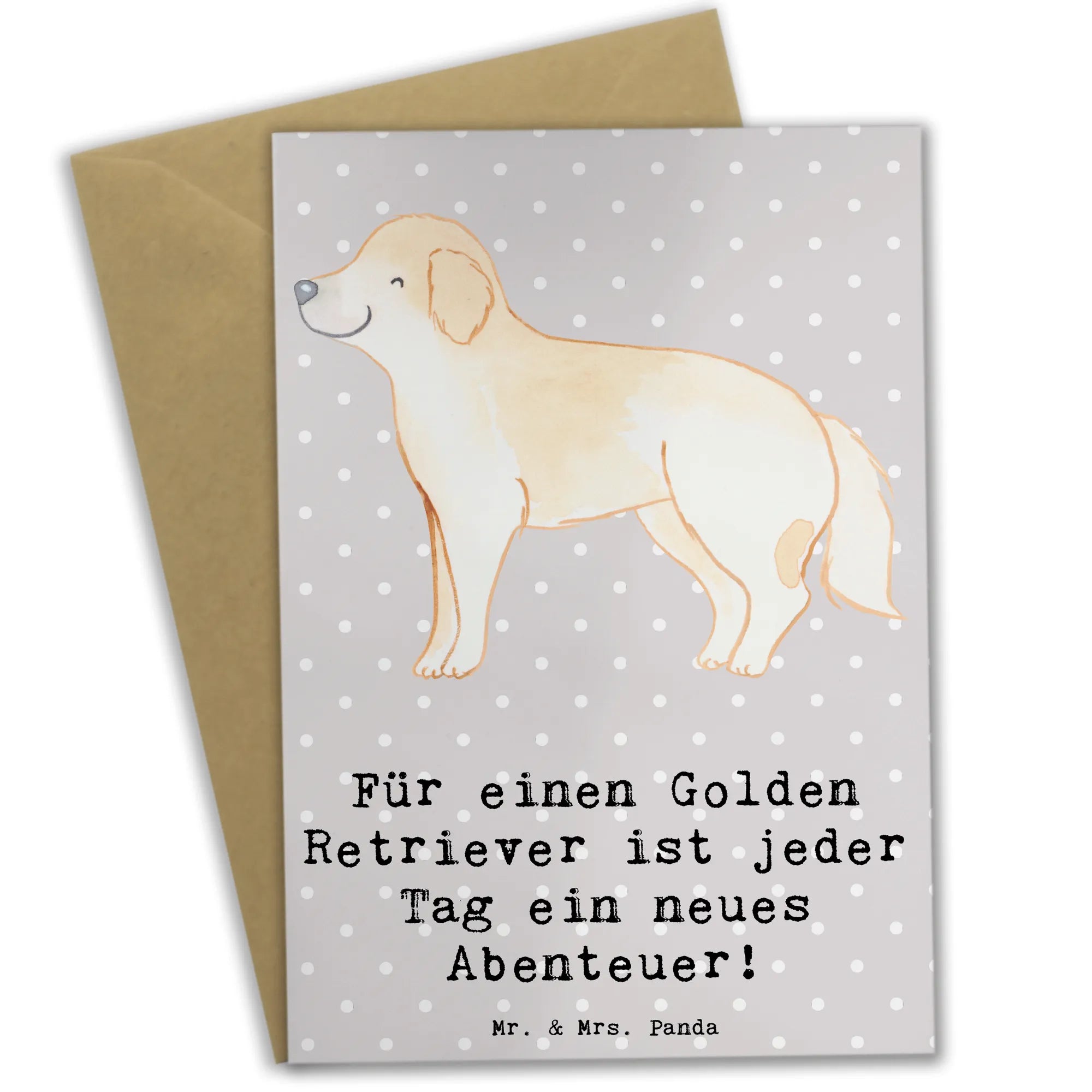 \nMit dieser Grußkarte sorgst du nicht nur für Freude im Alltag, sondern du unterstützt auch die handwerkliche Kunst von Mr. & Mrs. Panda. Verschenke ein Stück Lebensfreude und zeige, wie viel dir eine Person bedeutet, indem du ihr diese liebevoll gestaltete Karte schickst. Ganz gleich, zu welchem Anlass – mit unserer Golden Retriever Grußkarte liegst du immer goldrichtig!