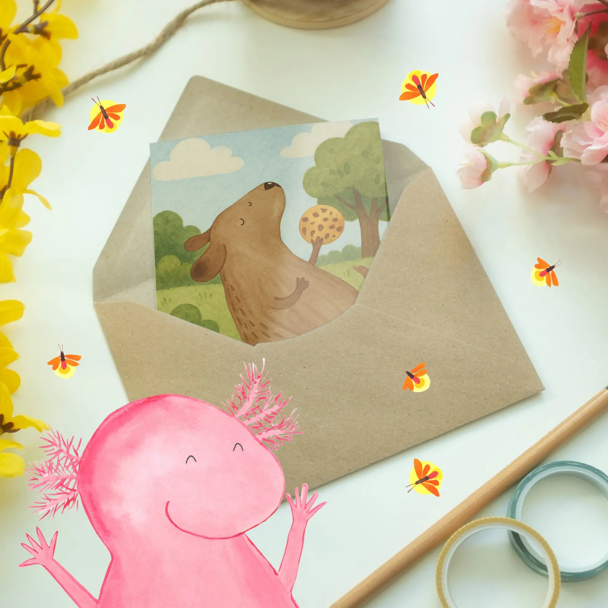 Suchst du eine Herz erwärmende Grußkarte für Hundeliebhaber? Die Grußkarte „Hund Keks" aus der Hunde Kollektion von Mr. & Mrs. Panda ist ein liebevolles, handgezeichnetes Motiv, das sofort ein Lächeln auf die Lippen zaubert. Ein fröhlicher Hund, der genüsslich einen Keks isst – ein Motiv, das zu vielen Anlässen passt und besondere Gefühle transportiert.