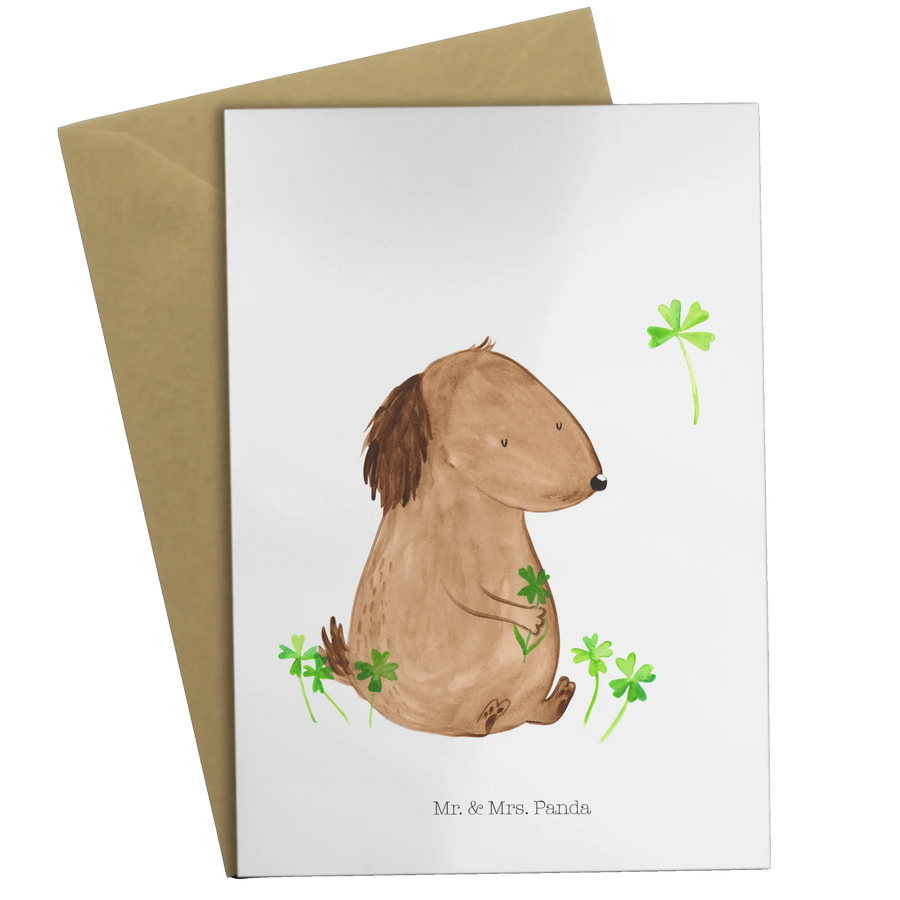Entdecke die zauberhafte Grußkarte "Hund Kleeblatt" aus der einzigartigen Hunde Kollektion von Mr. & Mrs. Panda!