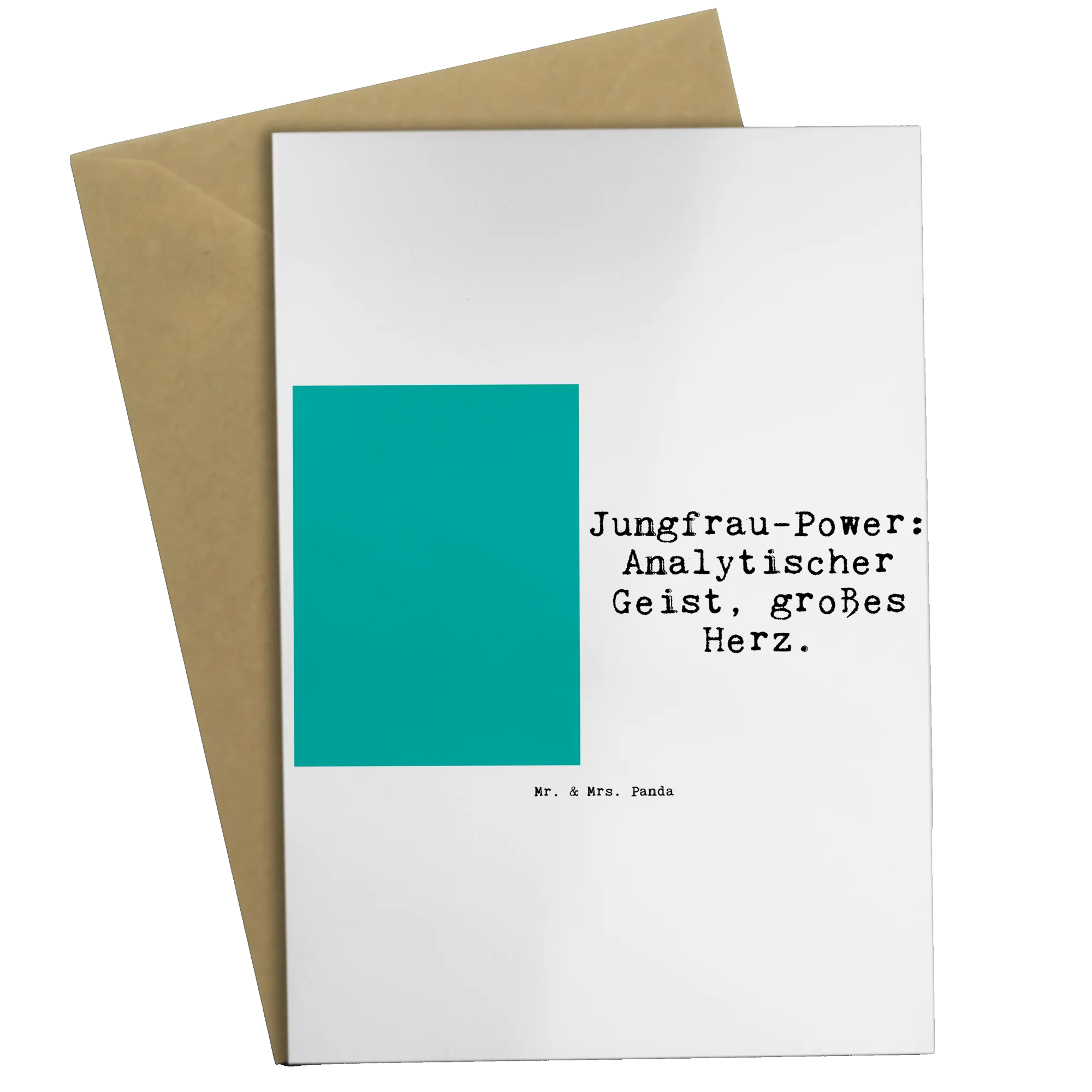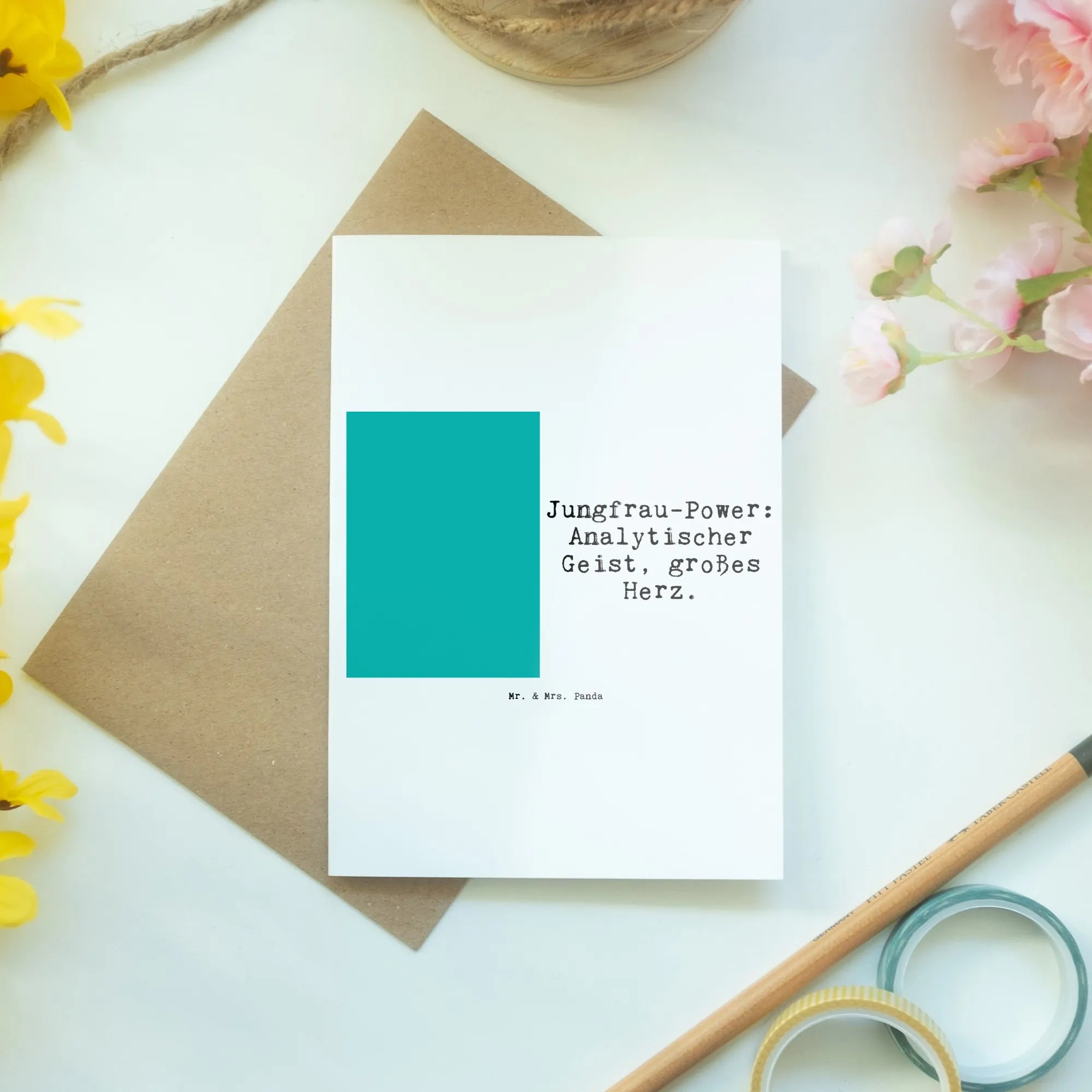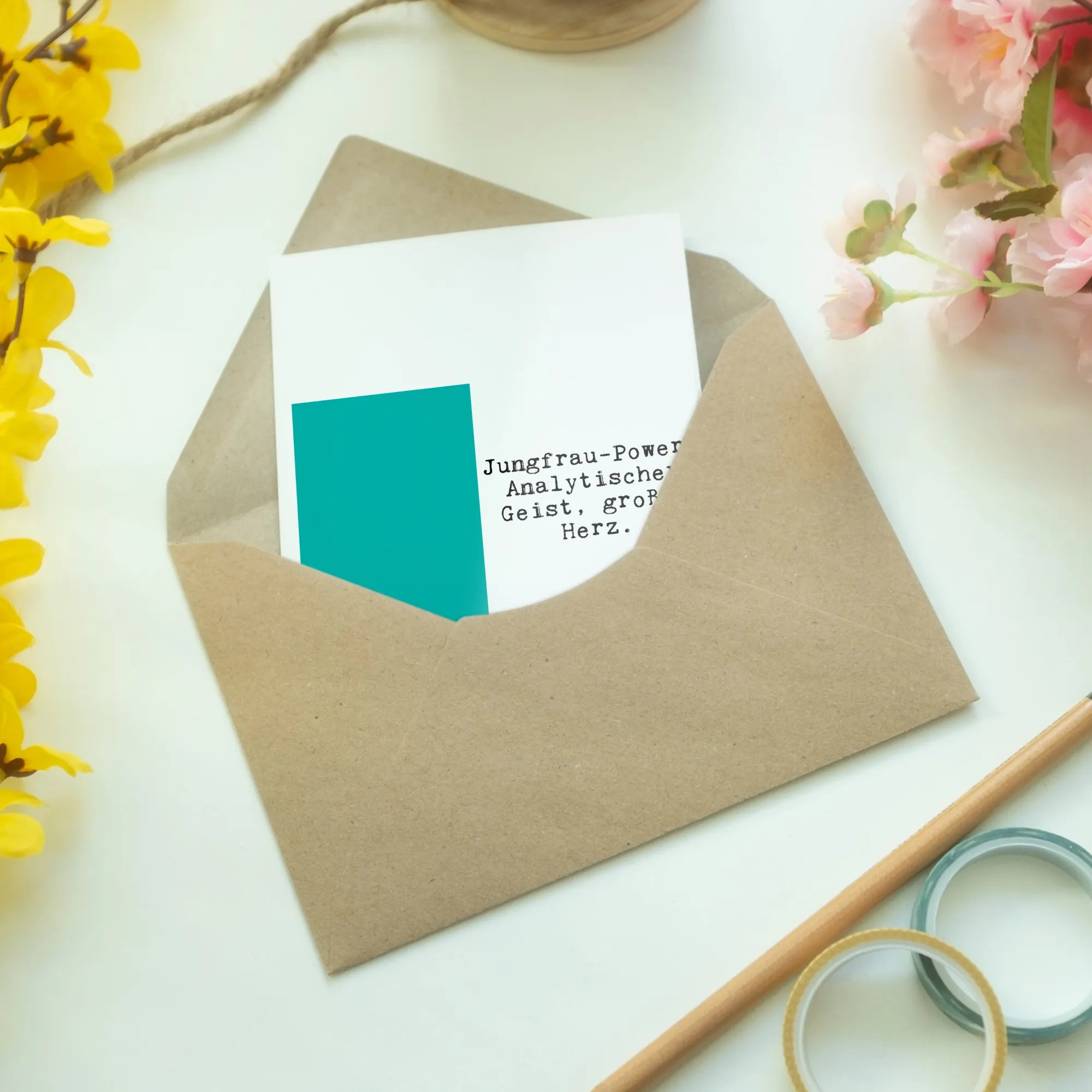 Entdecke unsere wunderschöne Grußkarte mit dem Motiv 'Jungfrau Astrologie' aus der einzigartigen Sternzeichen-Kollektion von Mr. & Mrs. Panda. Diese Karte ist speziell für all diejenigen gedacht, die im Zeichen der Jungfrau geboren wurden und sich durch ihre analytischen Fähigkeiten und ihr großes Herz auszeichnen. Handgezeichnet von der talentierten Mrs. Panda, ziert ein niedlicher Pinguin mit einem bezaubernden Blumenkranz und einer roten Rose die Vorderseite. Die sanften Aquarellfarben verleihen der Karte eine warme und einladende Ausstrahlung. Mit dem Slogan 'Jungfrau-Power: Analytischer Geist, großes Herz.' wird der Charakter und die Stärke der Jungfrauen perfekt unterstrichen.