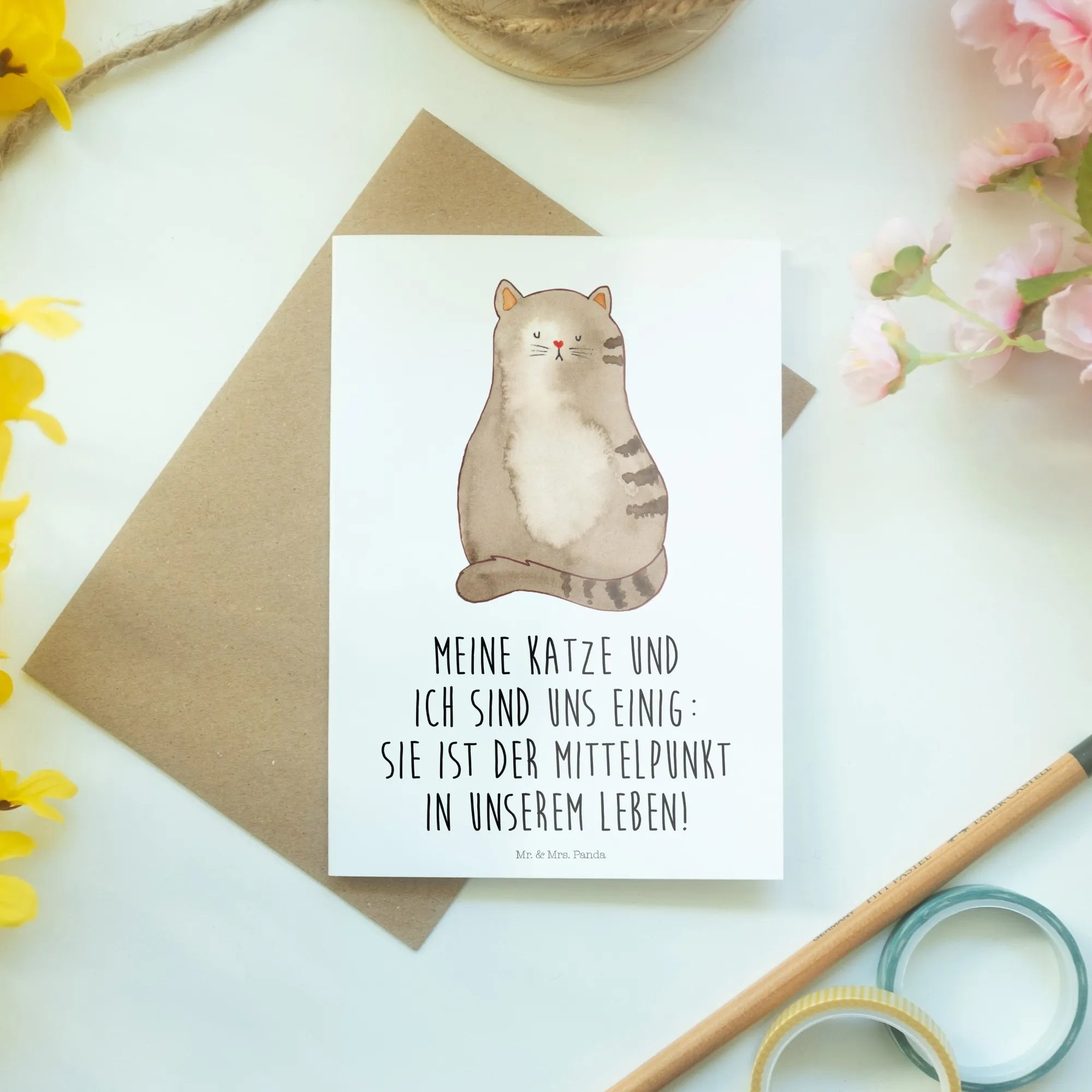 Entdecke die wunderschöne Grußkarte mit dem süßen Motiv einer Katze, die für alle Katzenliebhaber und Katzenfreunde perfekt geeignet ist! Diese liebevoll gestaltete Klappkarte aus der exklusiven Katzen-Kollektion von Mr. & Mrs. Panda bringt sofort ein Lächeln auf die Gesichter aller, die von Katzen begeistert sind.