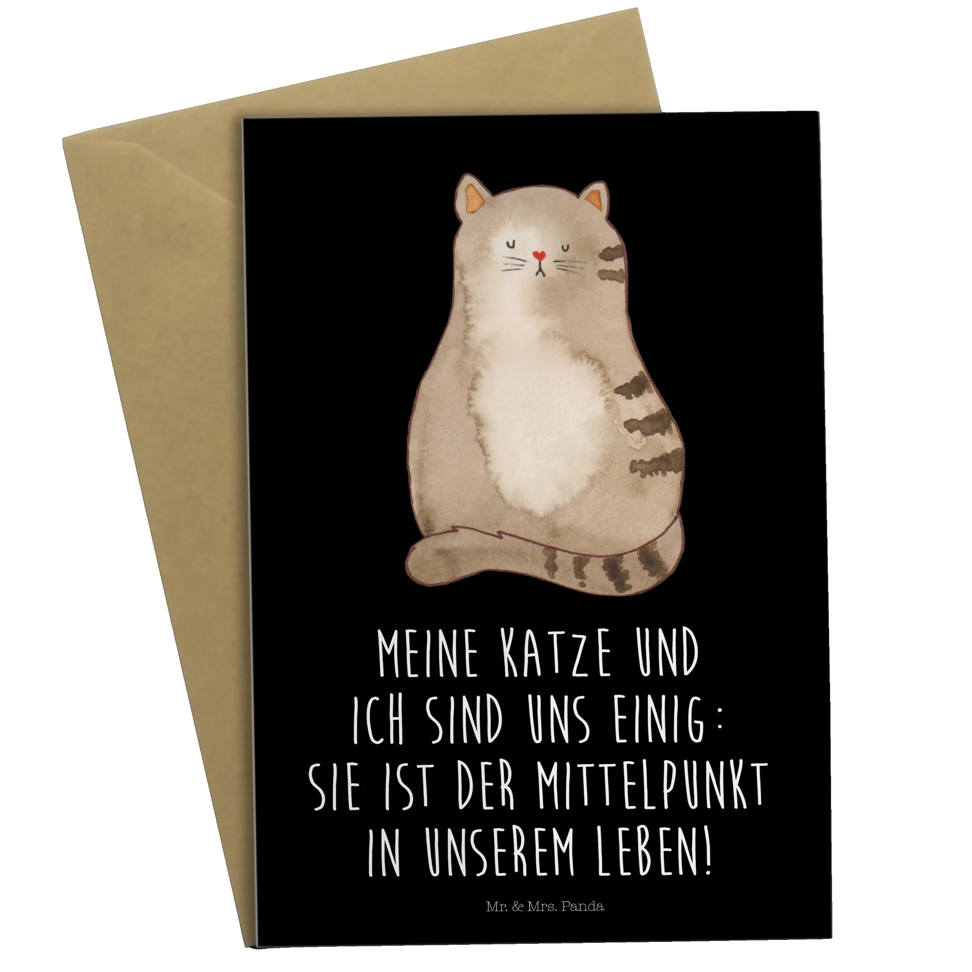 Die liebevoll von Mrs. Panda handgezeichnete Katze wirkt nicht nur verspielt, sondern spiegelt auch die Persönlichkeiten unserer geliebten Vierbeiner wider – arrogant, aber dennoch unglaublich charmant. Mit dem Spruch "Meine Katze und ich sind uns einig: sie ist der Mittelpunkt in unserem Leben!" wird die Karte zum idealen Begleiter für eine herzliche Nachricht.