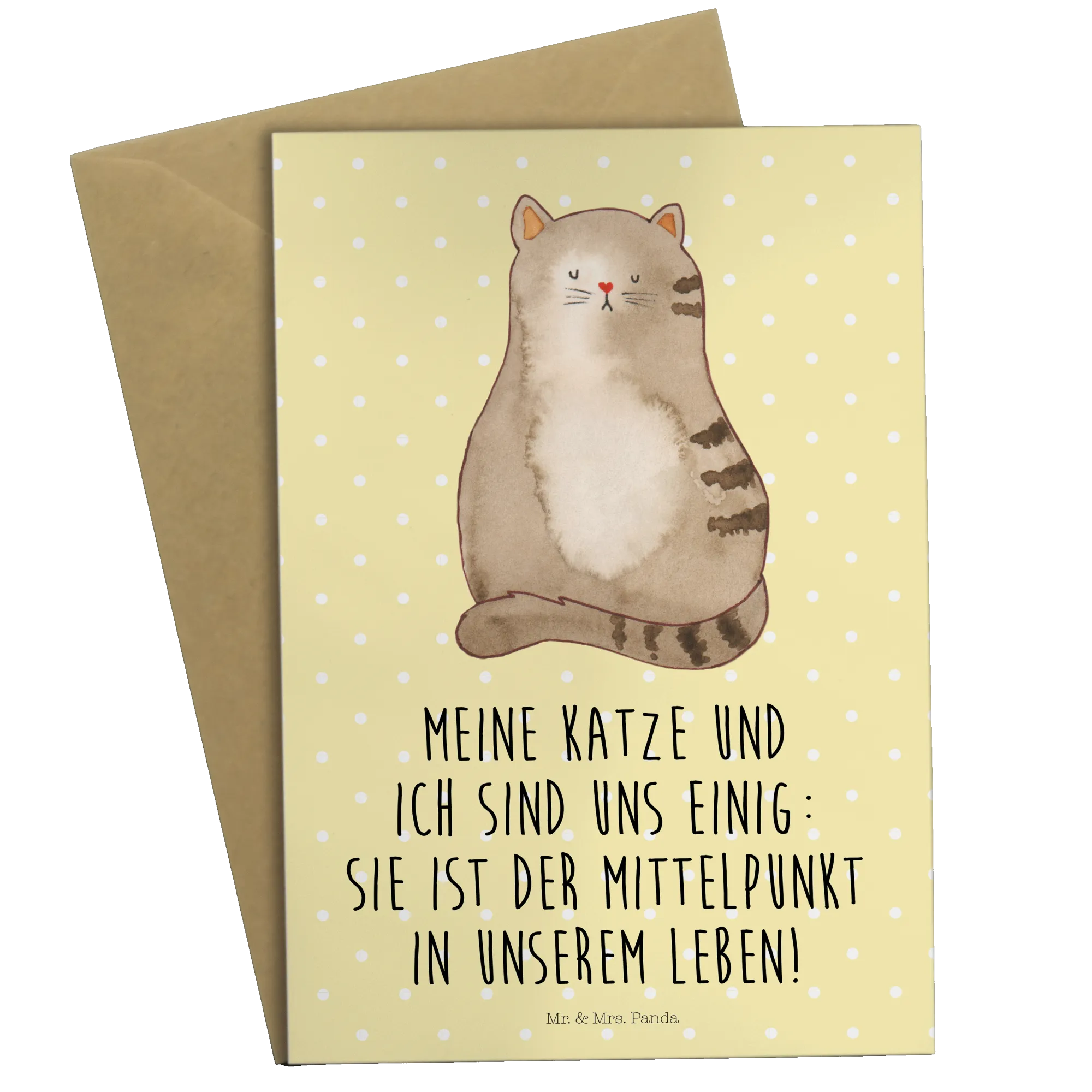 Entdecke die perfekte Grußkarte mit dem süßen Motiv einer sitzenden Katze aus der bezaubernden Katzen-Kollektion von Mr. & Mrs. Panda! Diese einzigartige Grußkarte ist nicht nur ideal für alle Katzenliebhaber, sondern bringt auch das Herz jeder Hauskatzenbesitzerin zum Schmelzen.