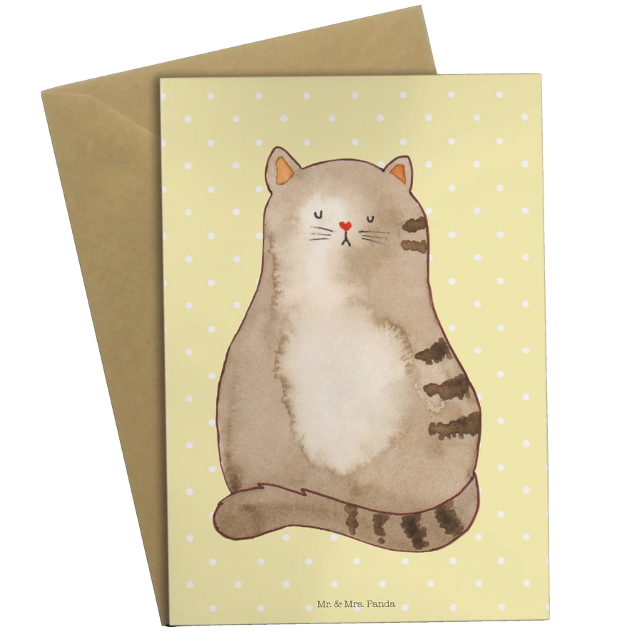 Entdecke die perfekte Grußkarte mit dem süßen Motiv einer sitzenden Katze aus der bezaubernden Katzen-Kollektion von Mr. & Mrs. Panda! Diese einzigartige Grußkarte ist nicht nur ideal für alle Katzenliebhaber, sondern bringt auch das Herz jeder Hauskatzenbesitzerin zum Schmelzen.
