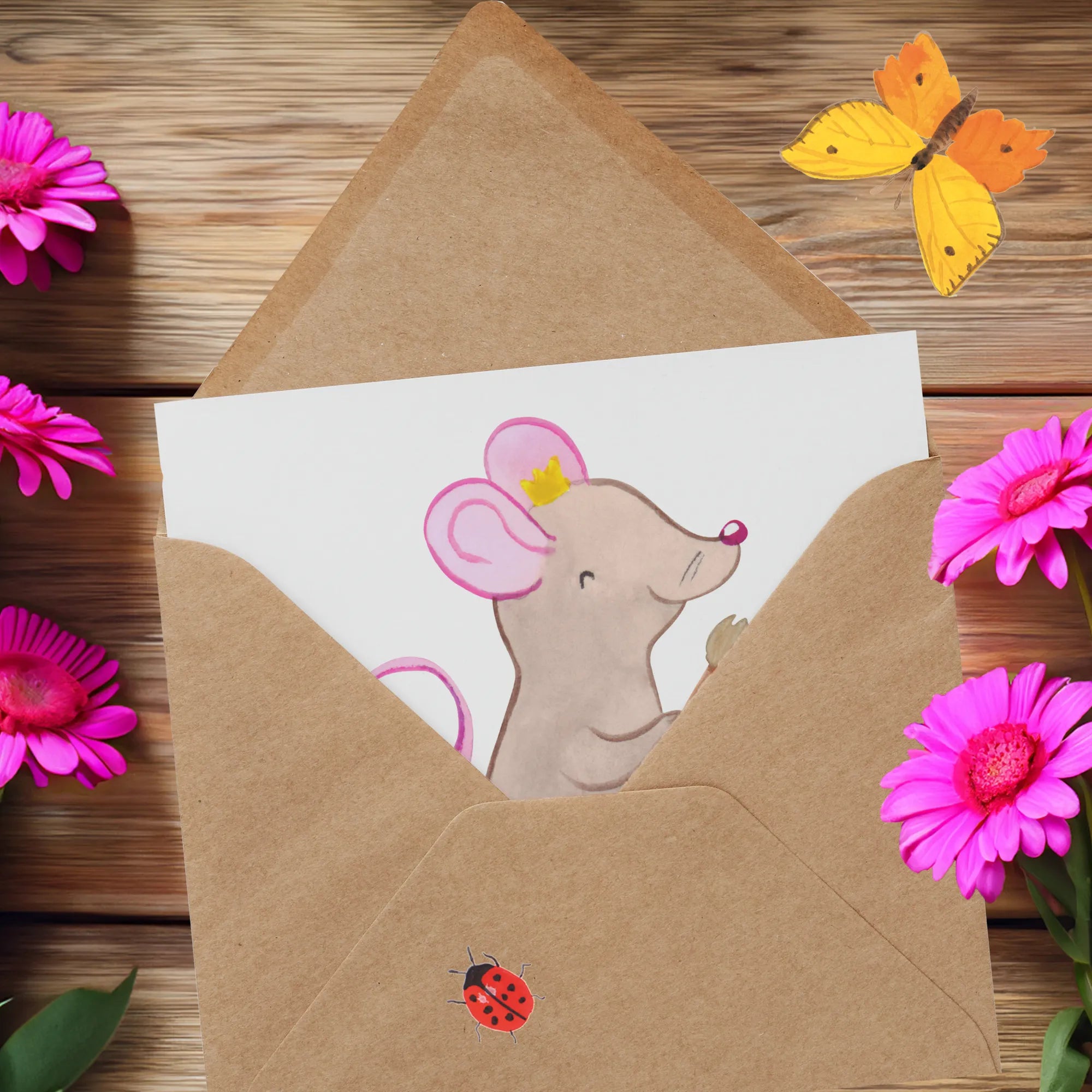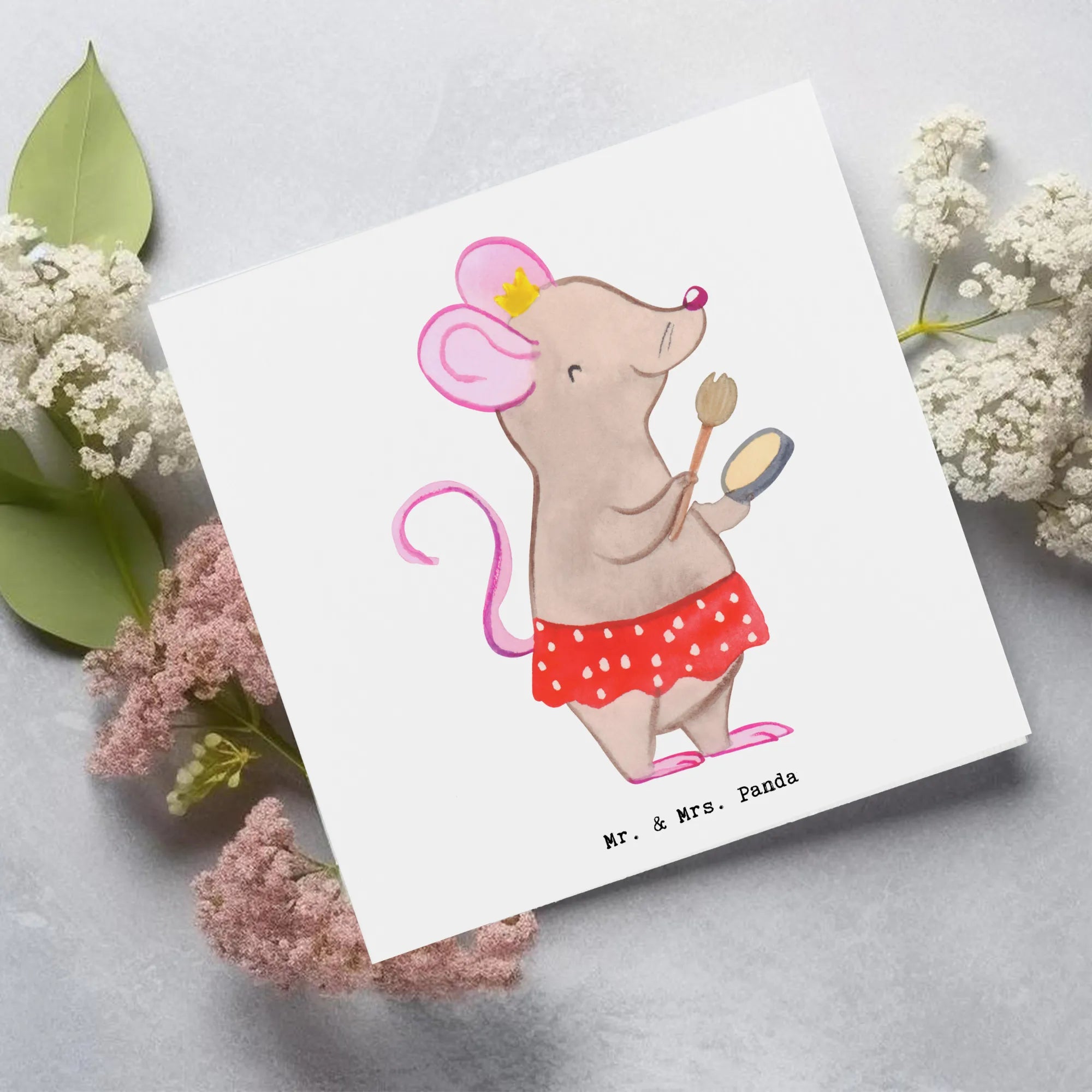 Wenn du auf der Suche nach einem perfekt liebevollen Geschenk bist, dann ist die Grußkarte "Kosmetikerin mit Herz" aus der Kollektion Berufe von Mr. & Mrs. Panda genau das Richtige für dich! Diese zauberhafte Karte zeigt unsere kleine Maus, die leidenschaftlich gerne ihre Freundinnen für den Abiball schminkt. Nun hat sie ihre Liebe zur Kosmetik zum Beruf gemacht und möchte auch andere Menschen glücklich machen.