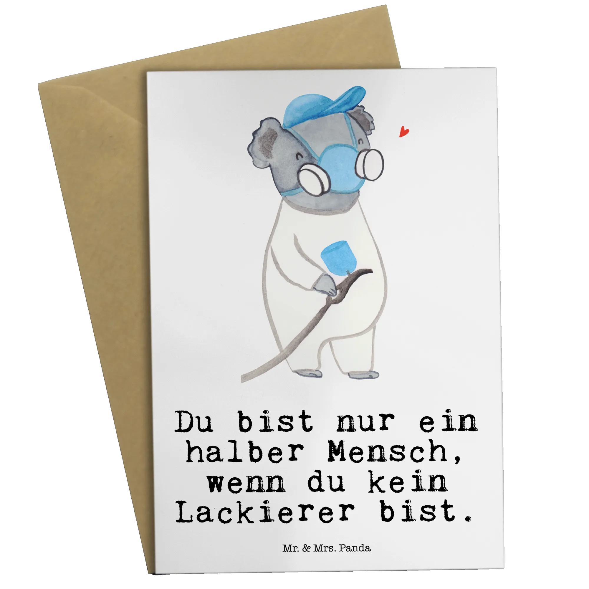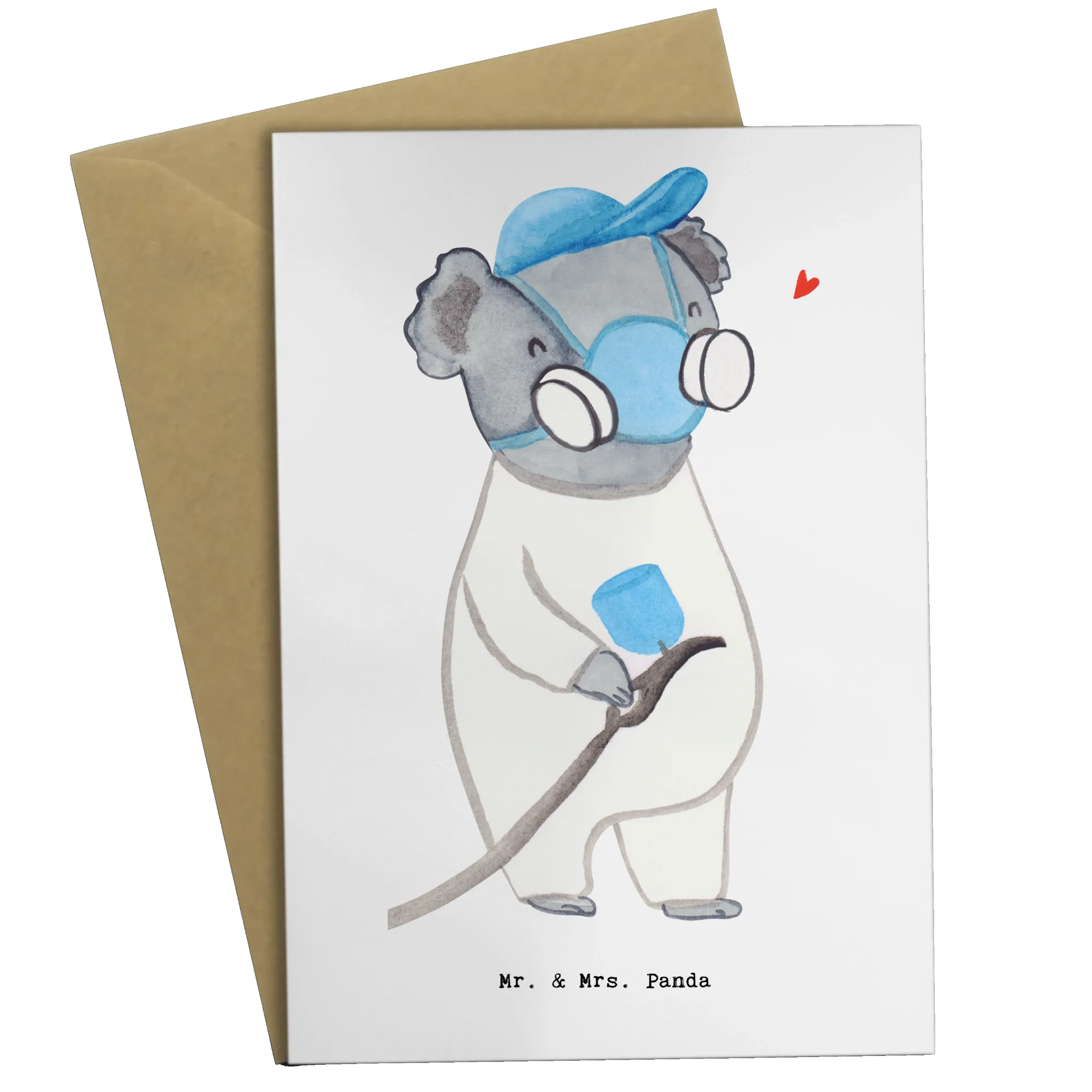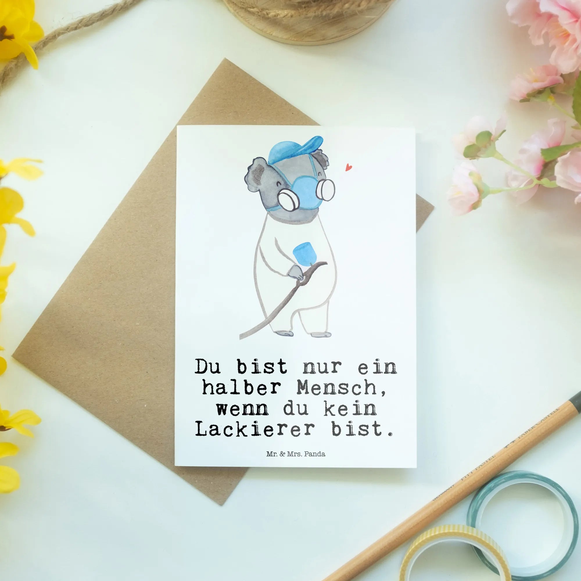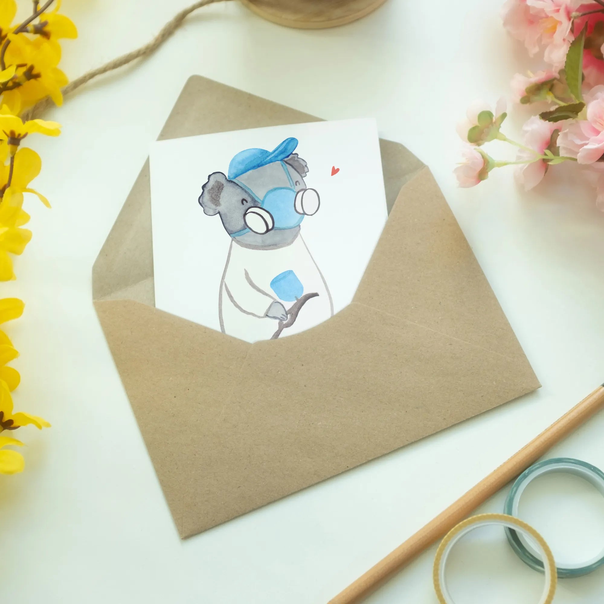 Entdecke die perfekte Grußkarte für Lackierer! Diese wunderbare Klappkarte von Mr. & Mrs. Panda ist ein absolutes Must-Have für alle, die in der Lackierbranche arbeiten oder einfach nur die Leidenschaft für das Handwerk teilen. Mit unserem zauberhaften Motiv 'Lackierer mit Herz' wird jeder Gruß besonders. Die Karte hat das liebevoll gestaltete Bild eines süßen Koalas, der mit einer Spritzpistole und einer Atemschutzmaske ausgestattet ist – perfekt, um ein Lächeln in die Gesichter von Lackierern und Lackierermeistern zu zaubern!