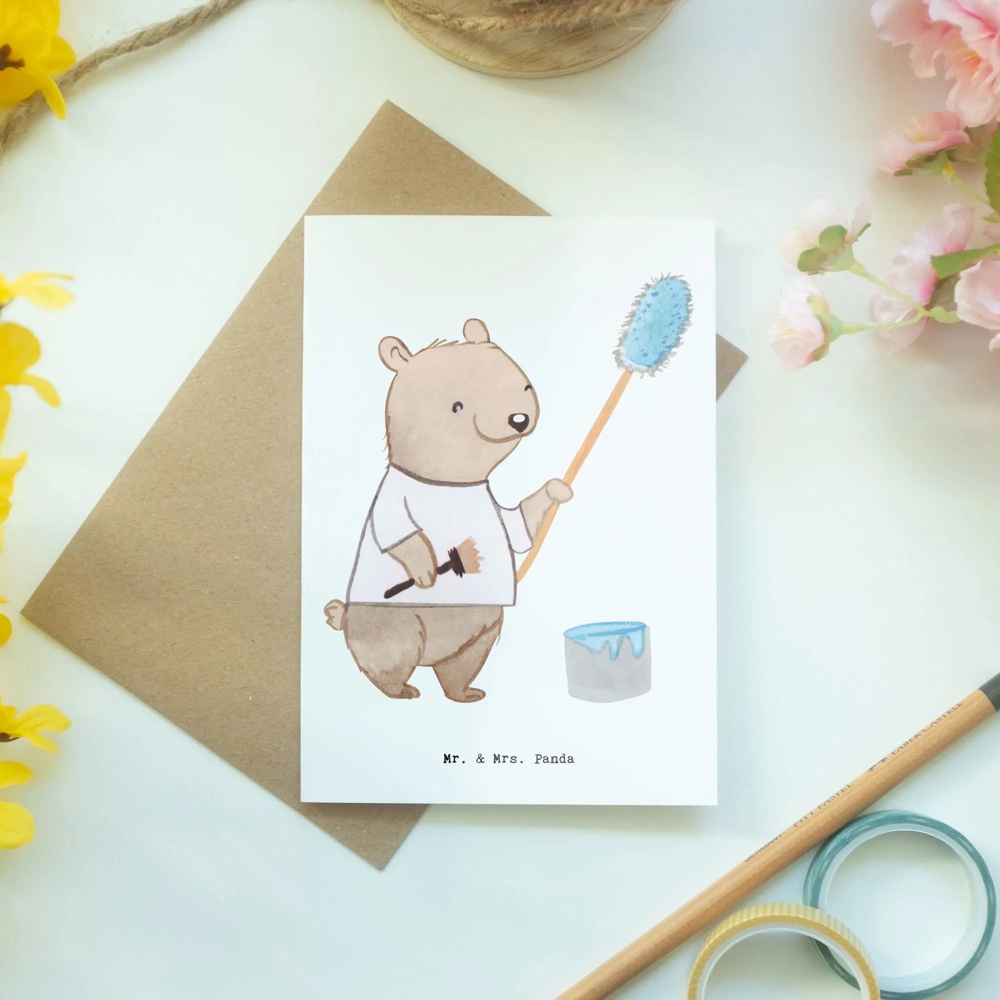 Die Grußkarte 'Maler mit Herz' ist das perfekte Geschenk für all jene kreativen Köpfe, die mit Pinsel und Farbe die Welt verschönern. Ob für einen Maler, Malermeister oder für jemanden, der gerade seine Gesellenprüfung bestanden hat, diese liebevoll gestaltete Karte von Mr. & Mrs. Panda bringt Freude und Dankbarkeit zum Ausdruck.