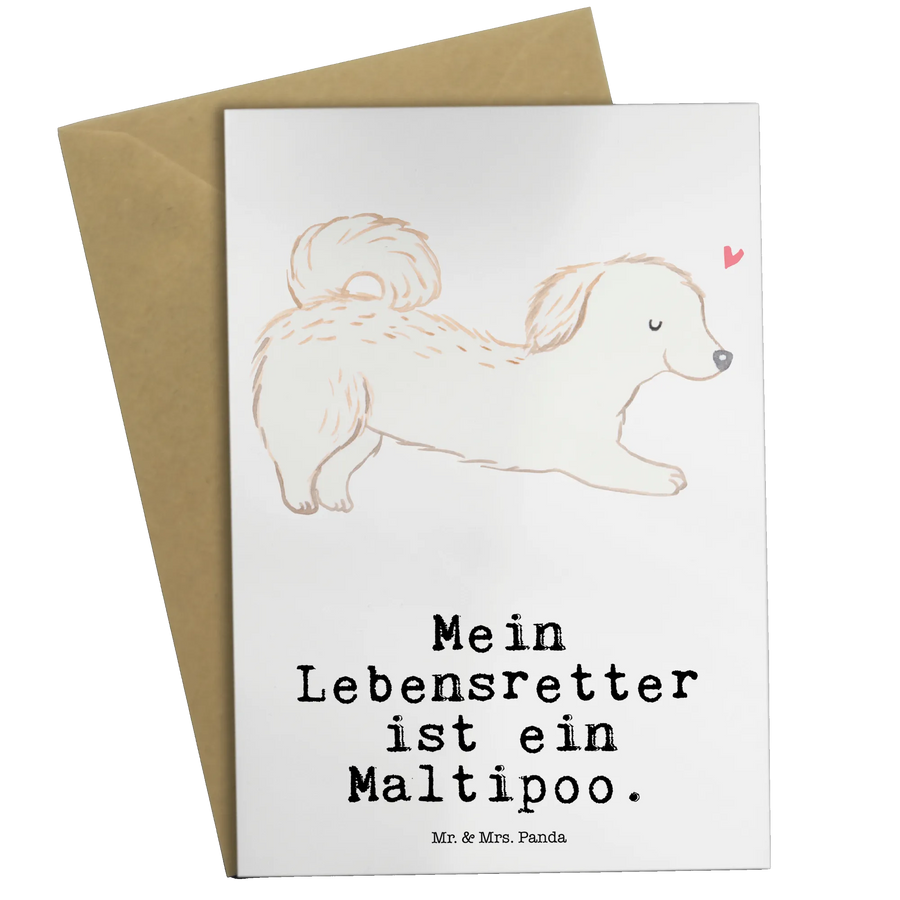 Die Grußkarte mit dem süßen Motiv 'Maltipoo Lebensretter' von Mr. & Mrs. Panda ist das perfekte Geschenk für jeden Hundeliebhaber und Hundebesitzer. Diese liebevoll gestaltete Karte ist nicht nur ein schönes Accessoire, sondern auch eine herzliche Botschaft, die von Herzen kommt.