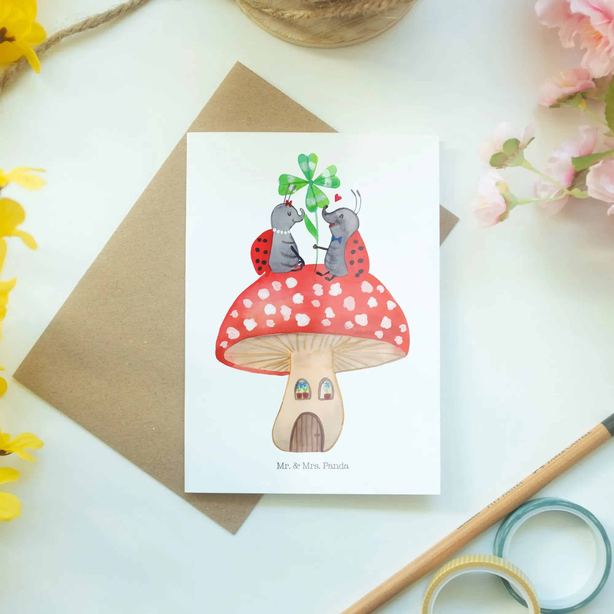 Entdecke die Zauberwelt von Mr. & Mrs. Panda mit unserer charmanten Grußkarte "Marienkäfer Paar Fliegenpilz" aus der Special Collection Small World!