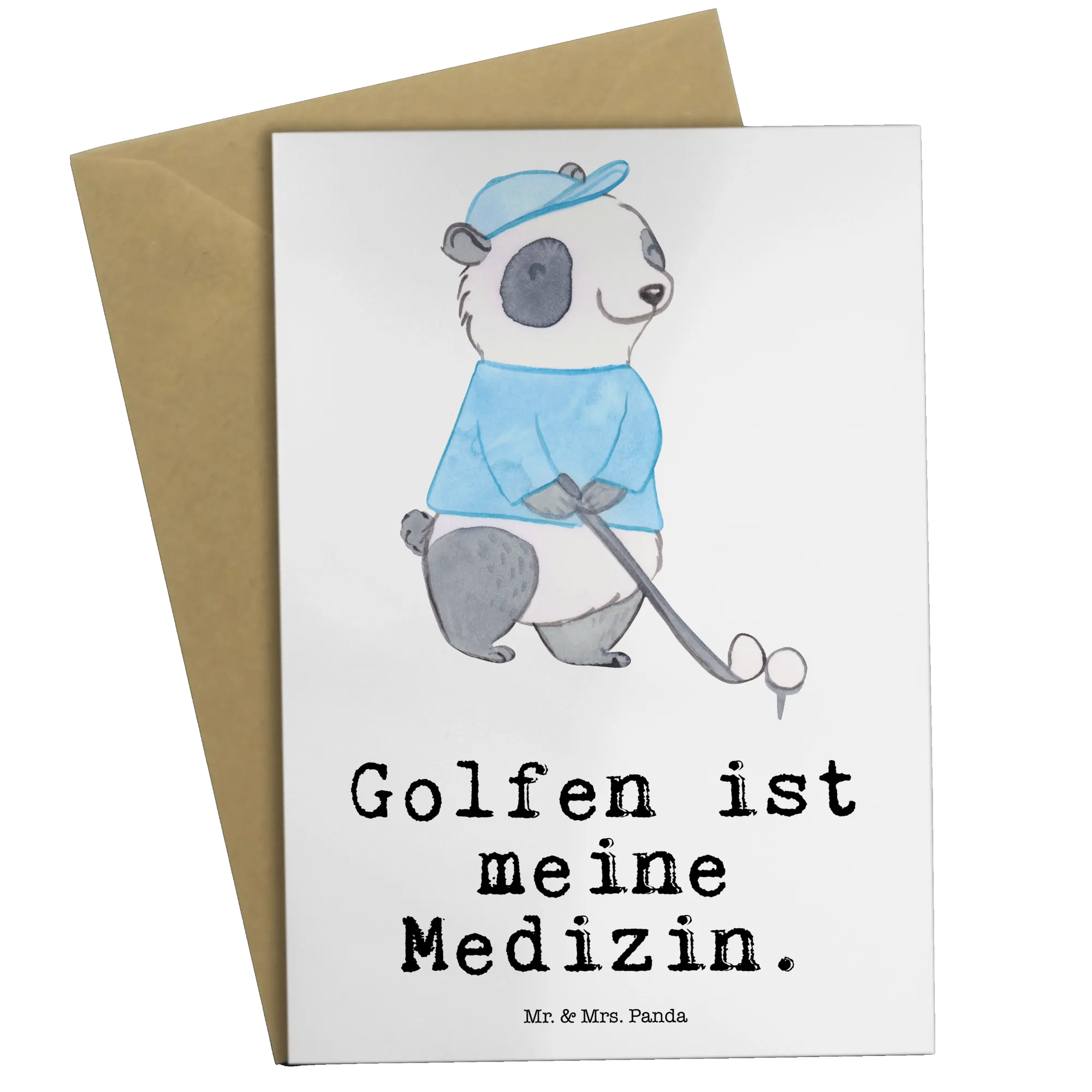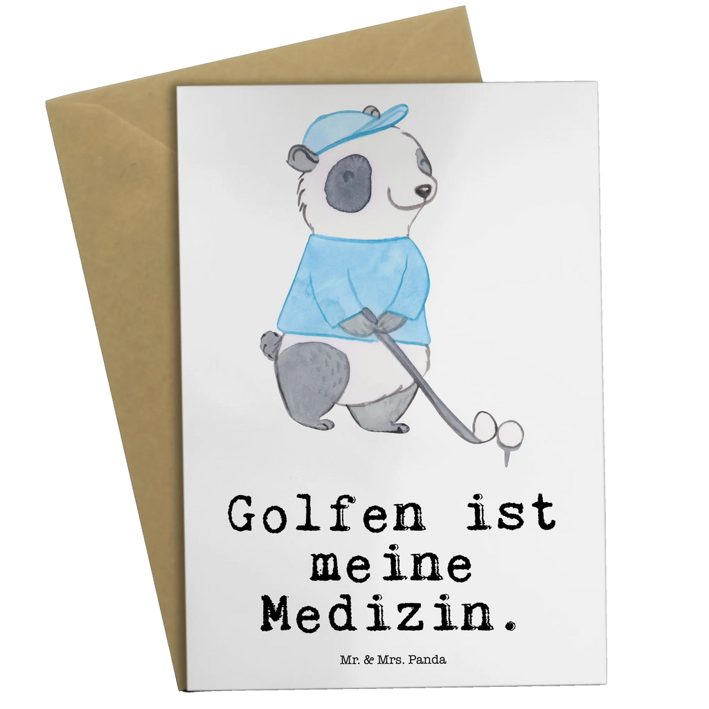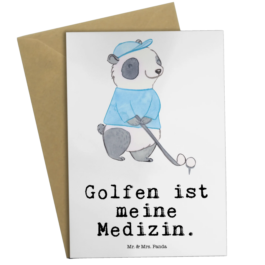 Die wunderschöne und einzigartige Grußkarte "Golfen ist meine Medizin" von Mr. & Mrs. Panda ist das perfekte Geschenk für alle Golfenthusiasten und Sportliebhaber. Mit dem bezaubernden Motiv eines süßen Pandas, der bereit ist, seinen Golfschläger zu schwingen, ist diese Karte nicht nur ein absoluter Hingucker, sondern versprüht auch gute Laune. Ideal, um Freunden und Golfkollegen eine Freude zu machen oder um zum nächsten Golfturnier einzuladen.