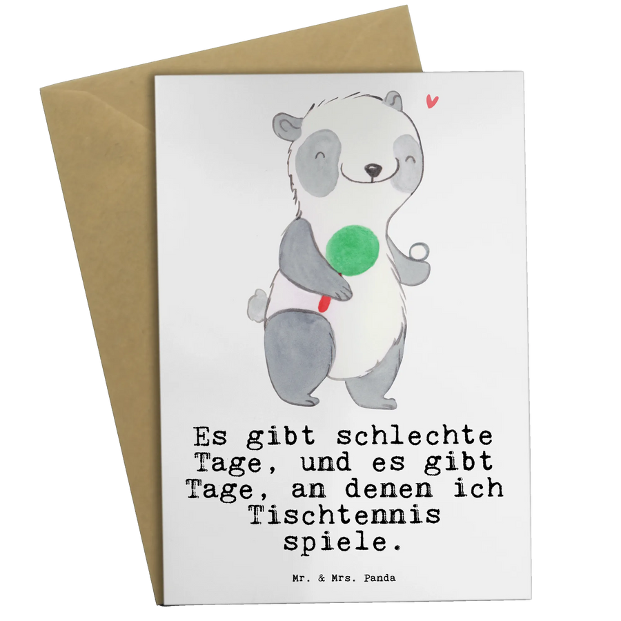 Die einzigartige Grußkarte "Panda Tischtennis Tage" von Mr. & Mrs. Panda ist das perfekte Geschenk für Tischtennisliebhaber und für alle, die mit Leidenschaft diesem spannenden Ballsport nachgehen. Ob zu Geburtstagen, als Einladung zu einem Tischtennisturnier oder einfach als nette Geste, um jemandem ein Lächeln ins Gesicht zu zaubern – diese Karte erfüllt jeden Zweck!
