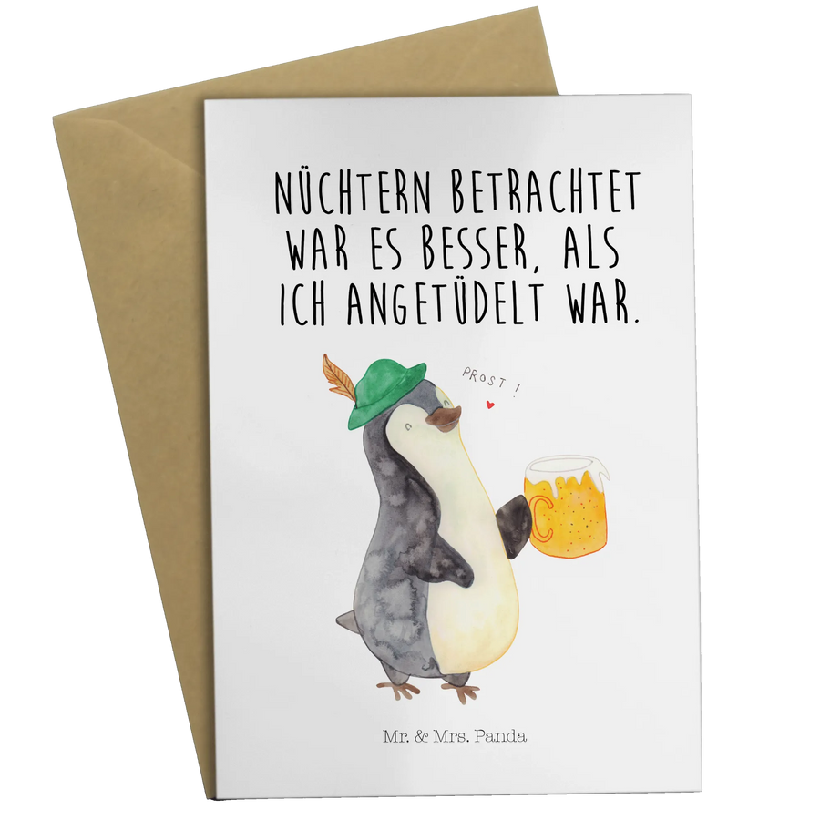 Entdecke die bezaubernde Grußkarte mit dem süßen Pinguin Bier Motiv von Mr. & Mrs. Panda! Diese einzigartige Klappkarte ist perfekt für alle Bierliebhaber und Freunde der bayrischen Kultur. Egal, ob zu Geburtstagsfeiern, Oktoberfest-Partys oder einfach nur, um einem Freund ein Lächeln ins Gesicht zu zaubern – diese Karte sorgt für gute Laune!