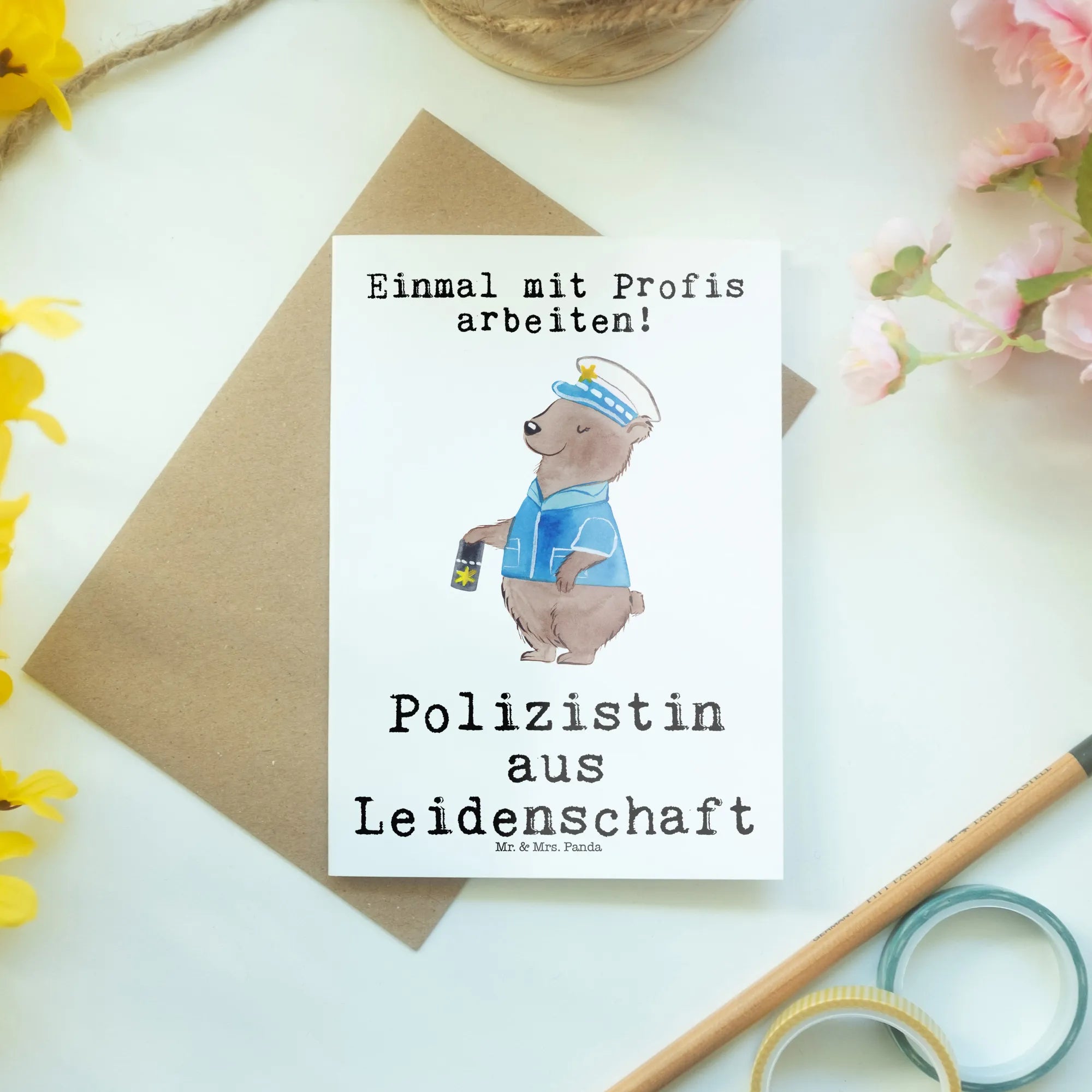 Die Grußkarte "Polizistin aus Leidenschaft" von Mr. & Mrs. Panda ist das perfekte Geschenk für alle, die eine Liebe zu ihrem Beruf als Polizistin oder Polizist haben. Diese wunderschöne und einzigartige Grußkarte ist die ideale Möglichkeit, um deinen Respekt und deine Wertschätzung für Polizist*innen auszudrücken – sei es zum Berufseinstieg, zur Beförderung oder zum Jubiläum. Wenn du nach einer kreativen und liebevollen Art suchst, um "Danke" zu sagen, dann ist diese Karte genau das Richtige!