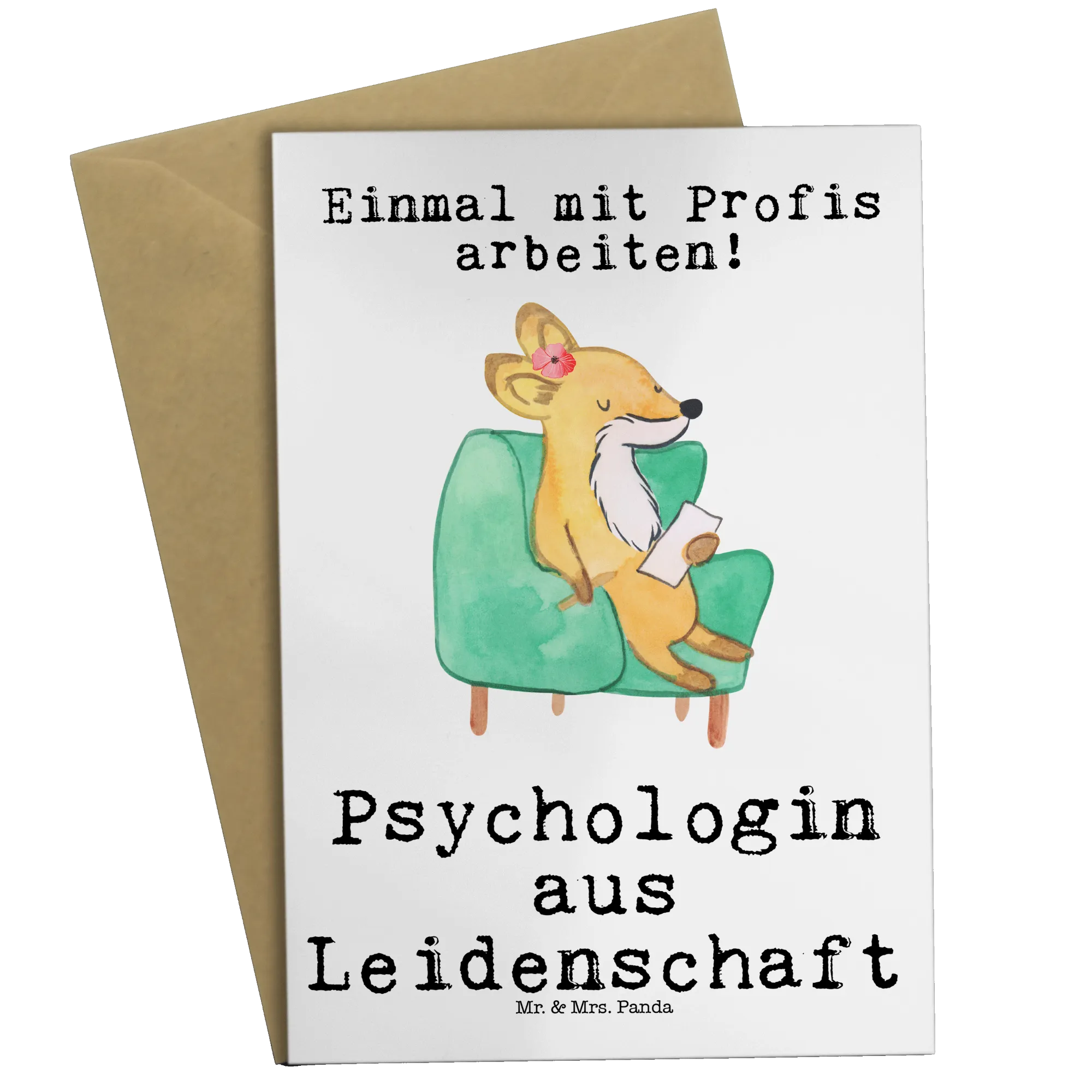Das Design zeigt eine charmante Psychologin, die als süßer, schlauer Fuchs dargestellt ist, während sie aufmerksam zuhört und Notizen macht. Diese liebevolle Gestaltung macht die Karte besonders und sorgt dafür, dass sie in Erinnerung bleibt.