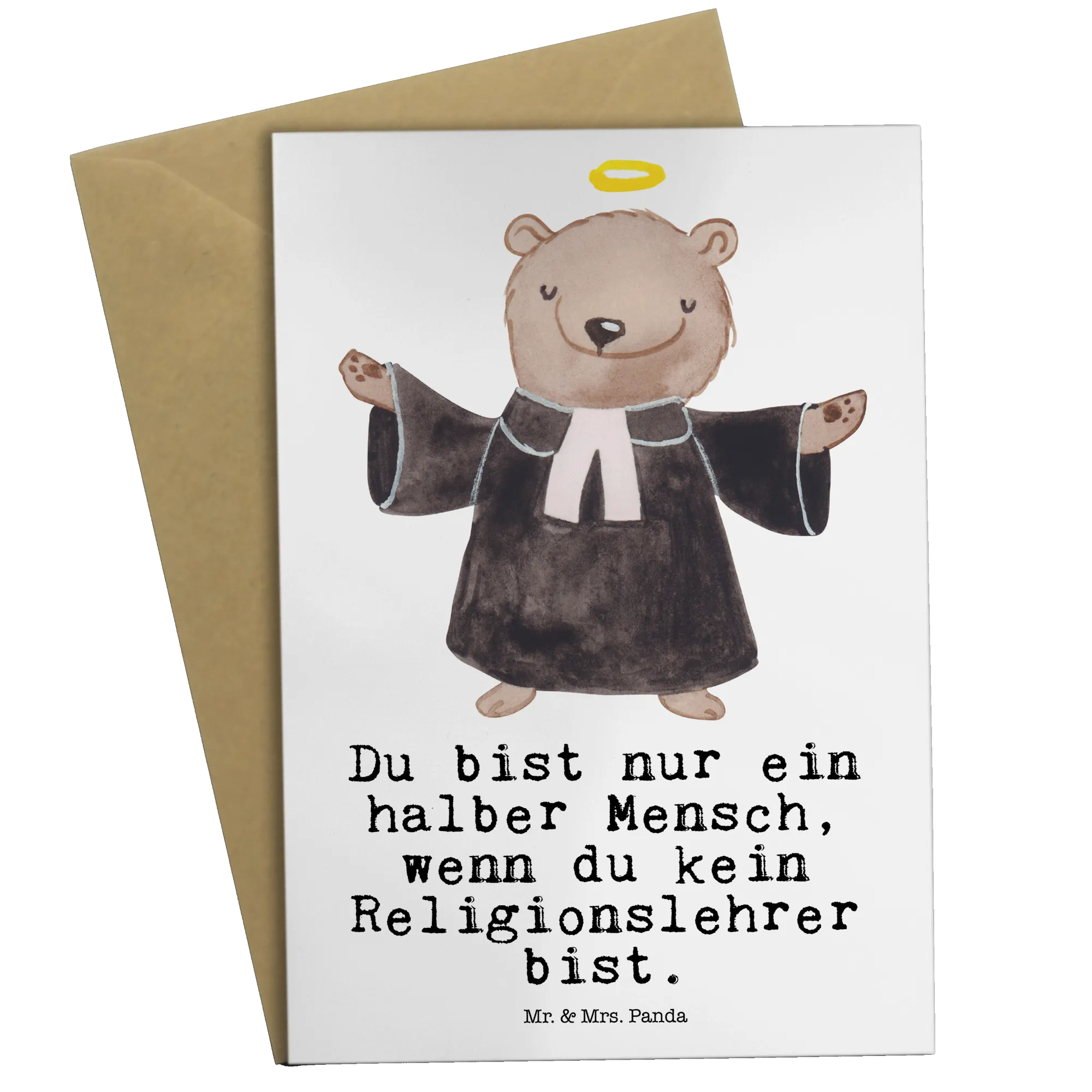 Der Slogan "Du bist nur ein halber Mensch, wenn du kein Religionslehrer bist." zeigt auf humorvolle Weise, wie wichtig diese Berufe sind. Die Karte ist ideal für Grundschullehrer, insbesondere für Religionslehrer, und eignet sich perfekt zum Schenken an Kollegen oder für Jubiläen. Die kreative Berufe Kollektion von Mr. & Mrs. Panda bietet viele weitere liebevolle Designs – entdecke sie alle!
